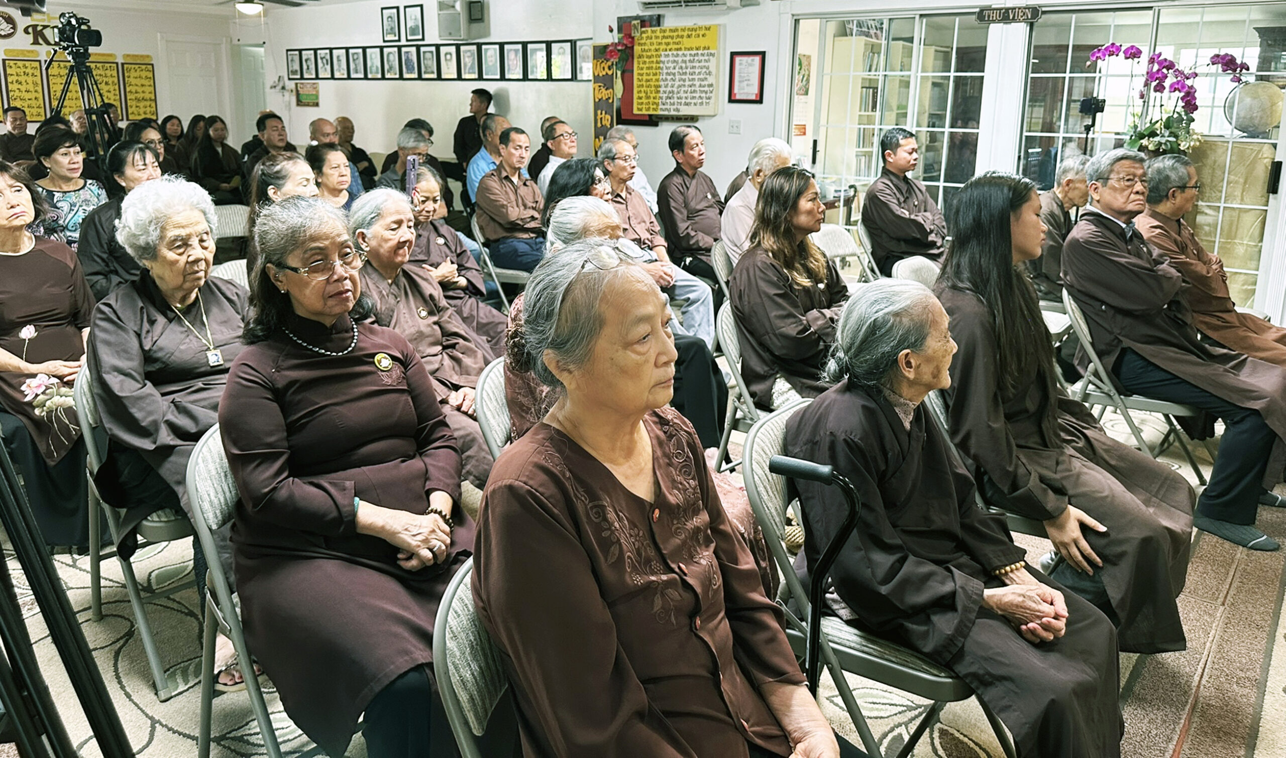 Đồng hương đến dự Đại Lễ Vu Lan tại hội quán Ban Trị Sự PGHH, Santa Ana. (Hình: Lâm Hoài Thạch/Người Việt)