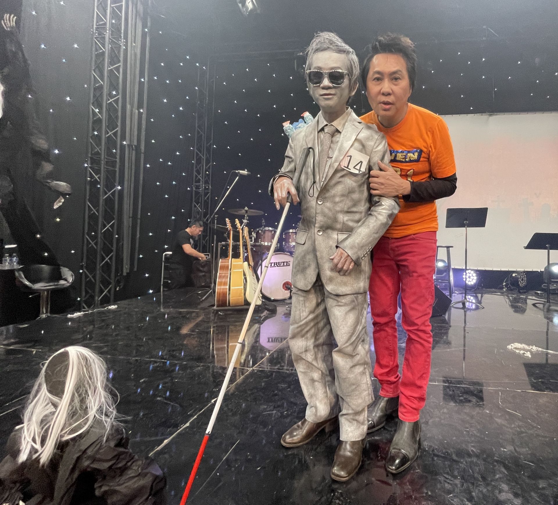 Nghệ sĩ khiếm thị Nguyễn Đức Đạt cho biết chính nghệ sĩ Thành Lễ giúp ông hóa trang và còn phụ diễn trong bài hát “Lửa Tình,” do chính ông sáng tác.