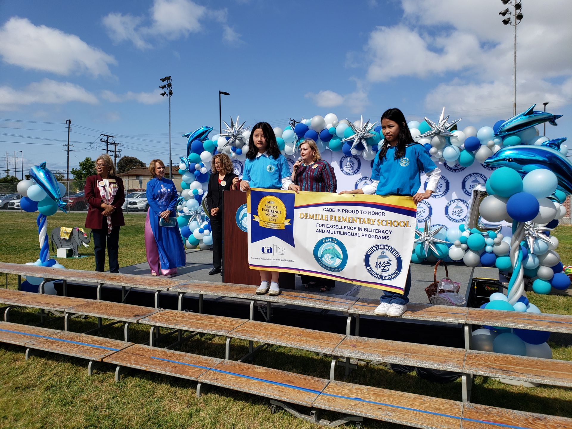 WESTMINSTER, California (NV) – Trường Tiểu Học DeMille, Westminster, vừa được Hiệp Hội Giáo Dục Song Ngữ California trao giải dấu ấn xuất sắc CABE sáng Thứ Tư, 10 Tháng Năm, tại khuôn viên trường.