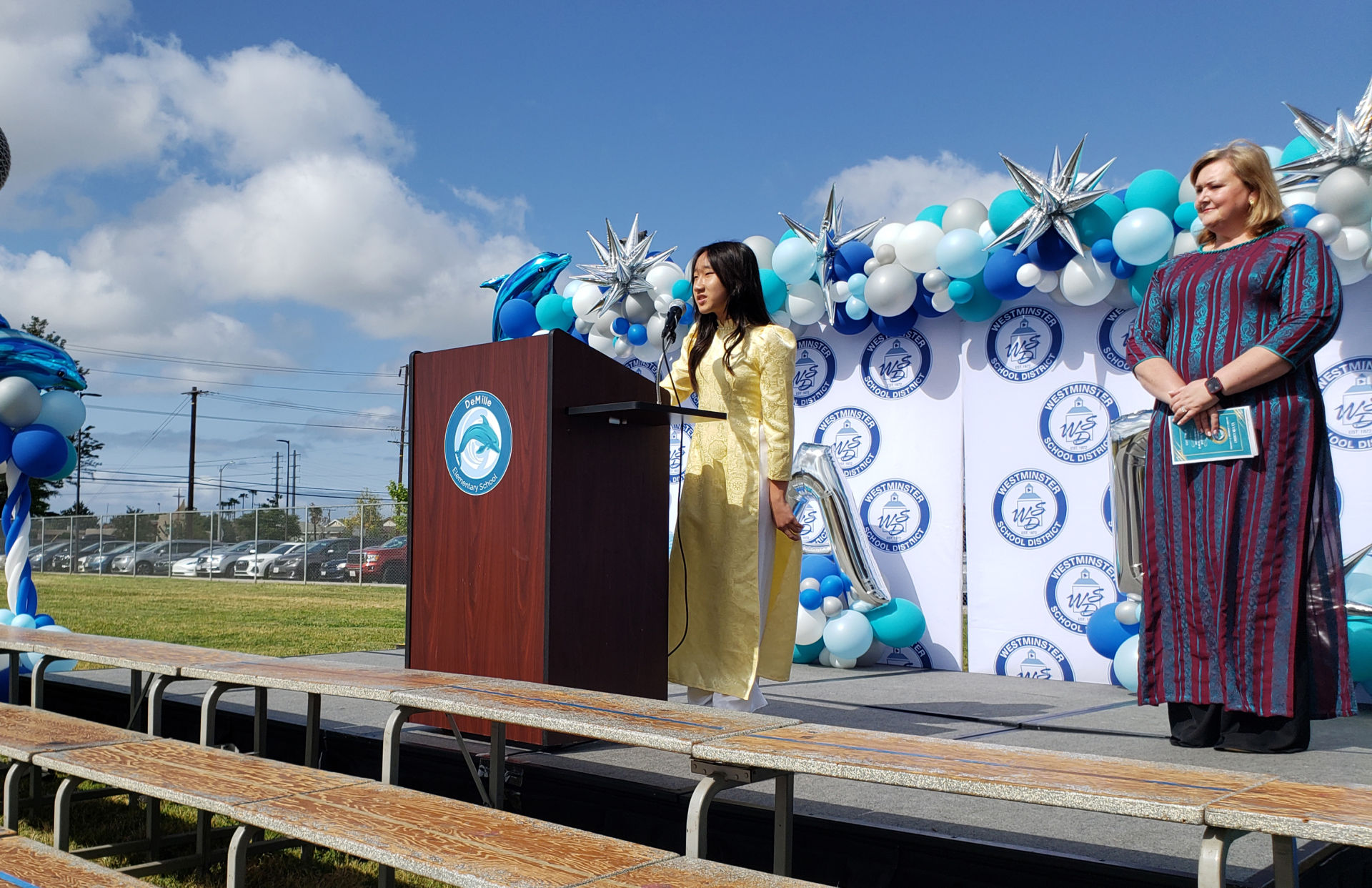Buổi lễ bắt đầu với lời phát biểu của ông David Johnson, chủ tịch Học Khu Westminster.