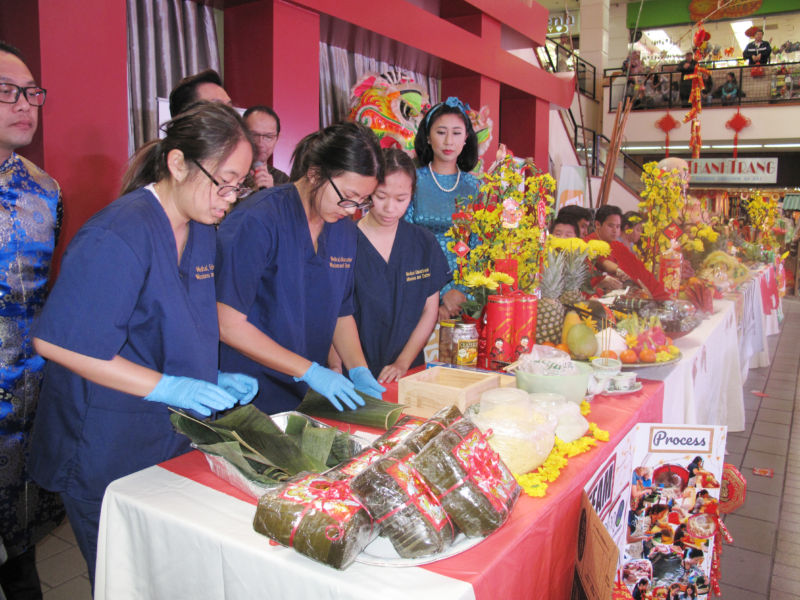 WESTMINSTER, California (NV) – Cuộc thi gói bánh chưng, bày mâm ngũ quả và thi áo dài, vừa diễn ra hôm 11 Tháng Hai, bên trong Thương xá Phước Lộc Thọ do Little Saigon TV tổ chức.