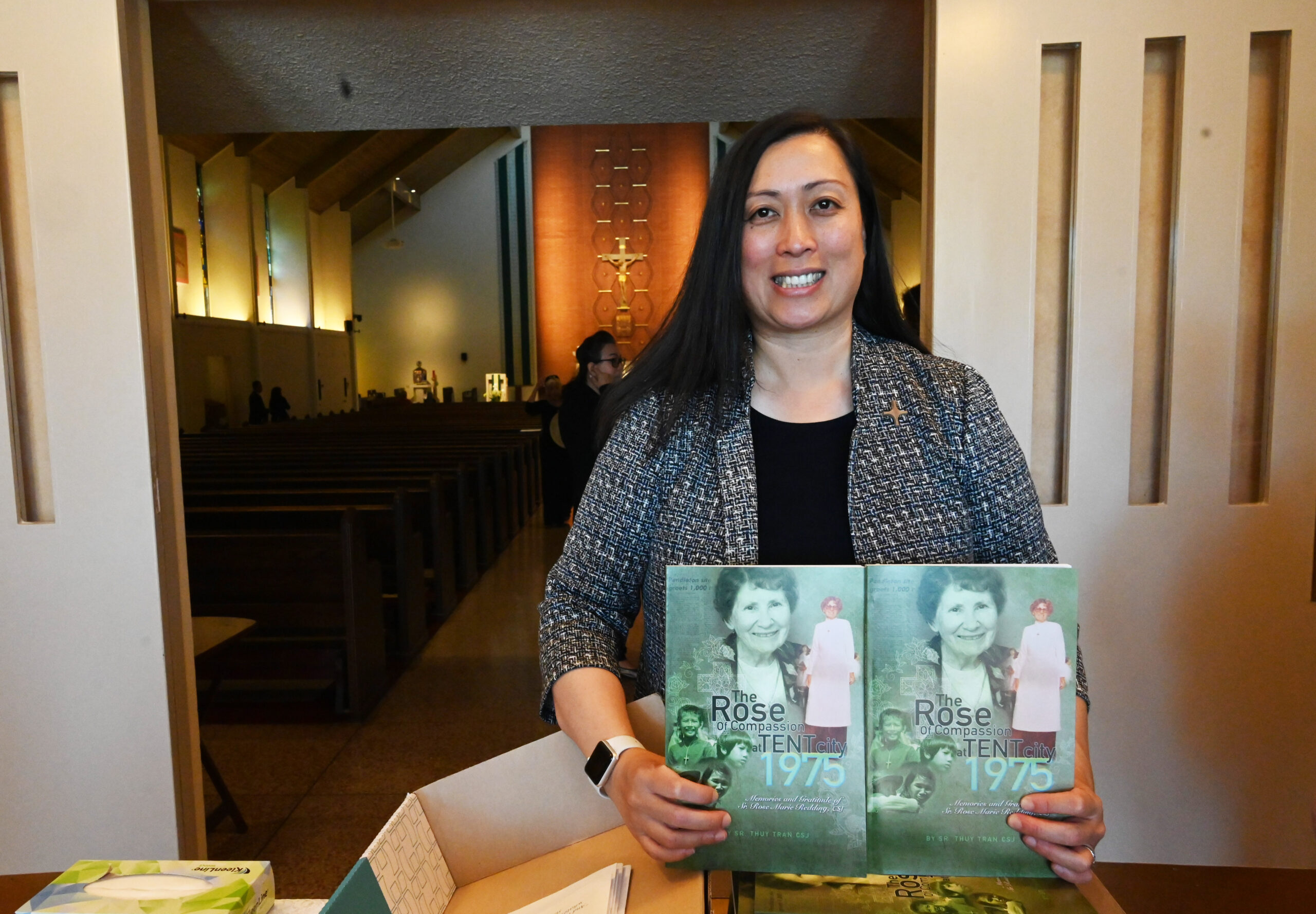 Trong Thánh Lễ, Soeur Trần Thanh Thúy đã chia sẻ quyển sách “Thành phố Lều 1975,” ghi lại lời kể của những người từng chịu ơn cứu giúp của Soeur Rose Marie, để tưởng nhớ một đài tưởng niệm sống động về sự phục vụ khắp nơi và cộng đồng người tị nạn Việt Nam.