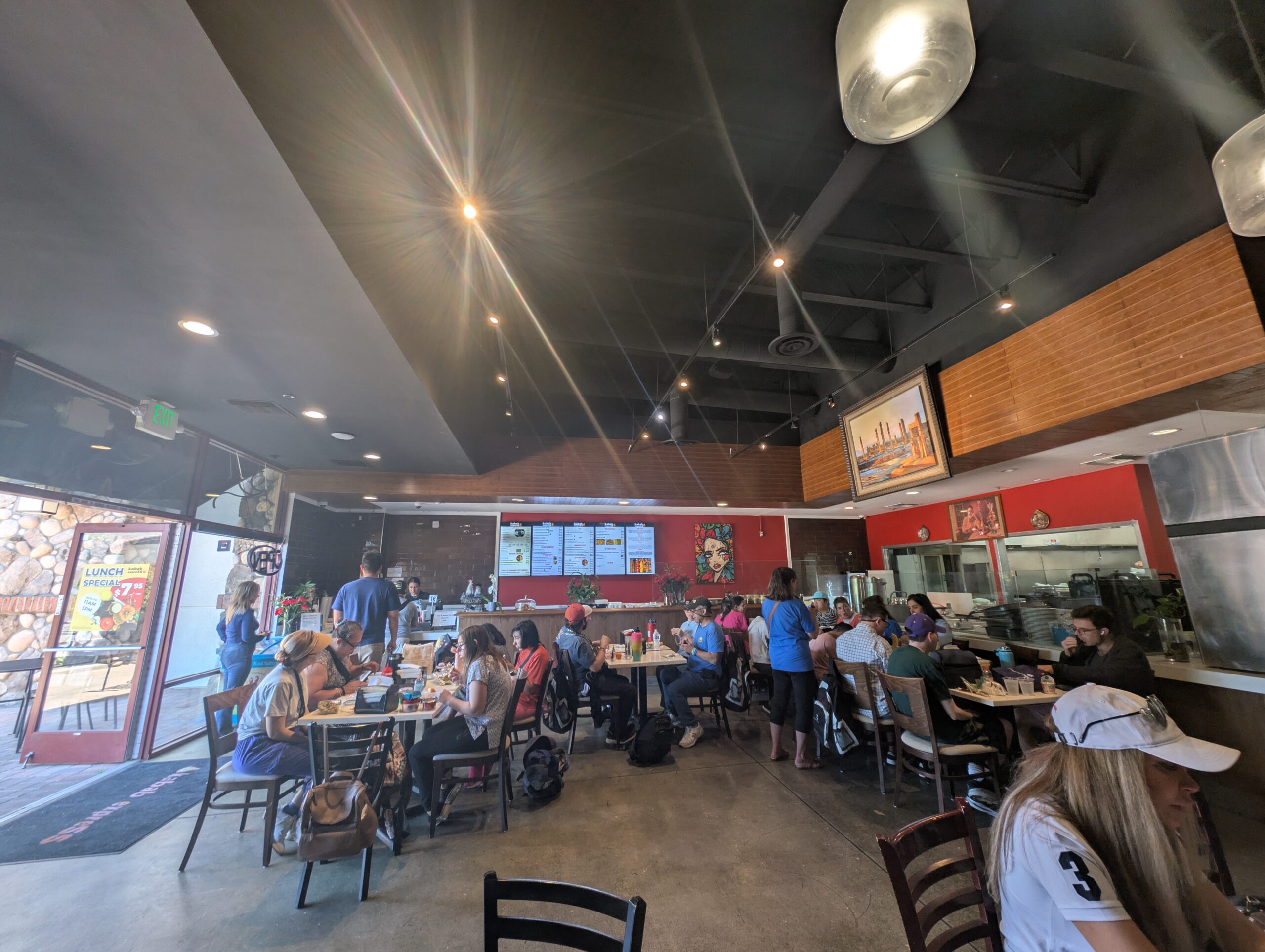 Bên trong tiệm khá rộng rãi, có nhiều bàn, và thực khách có thể gọi món ăn tại quầy, còn có thể nhìn vào nhà bếp phía sau để thấy các đầu bếp làm từng xiên thịt nướng.