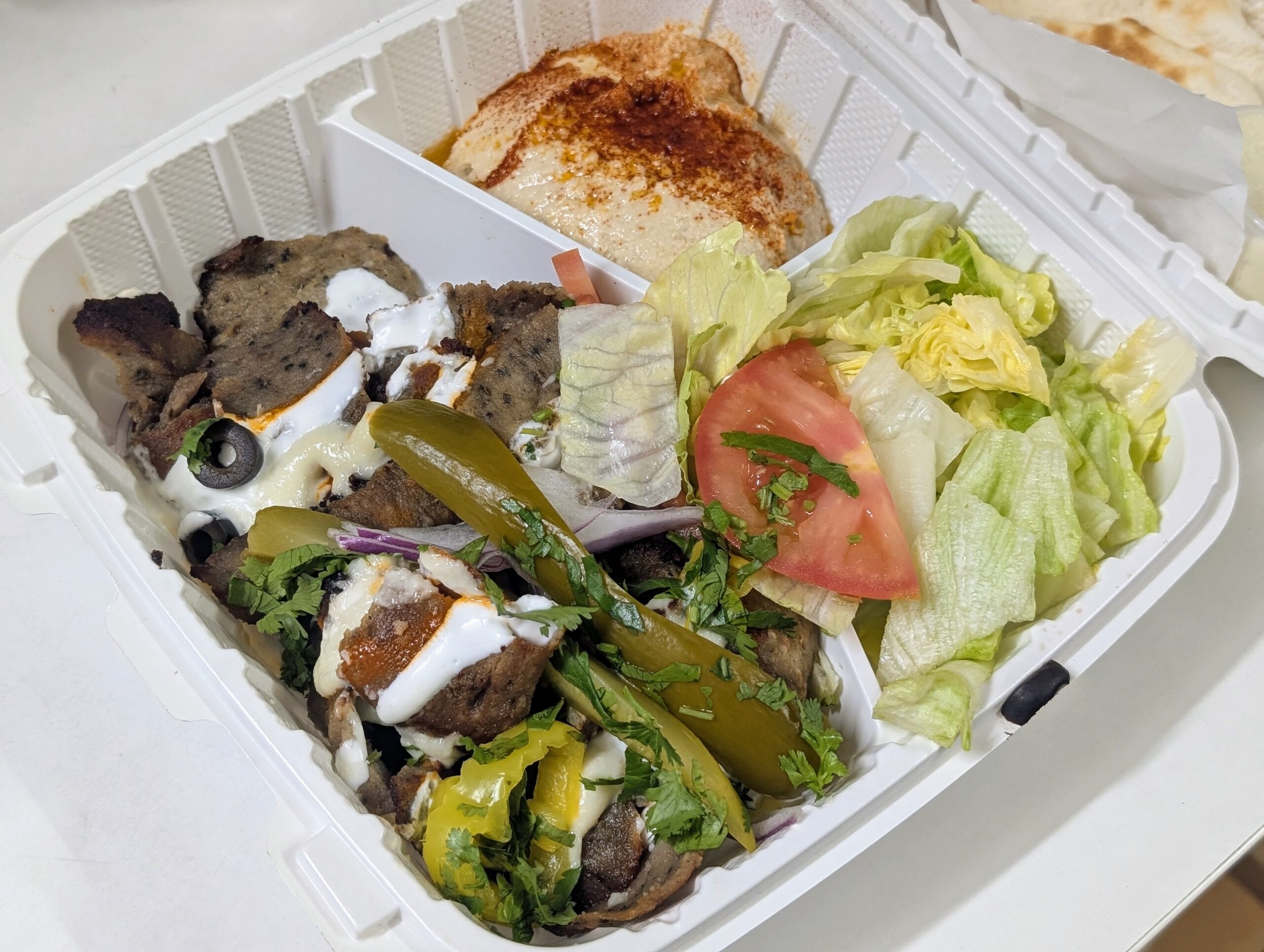 Vì thấy các món ăn rất ngon, tôi mua thử một phần thịt nướng “gyro” mang về. Món này có có những miếng thịt bò được xếp thành hình trống rồi nướng trên lò quay, sau đó đầu bếp cạo những lát thịt đã chín bên ngoài cho khách.