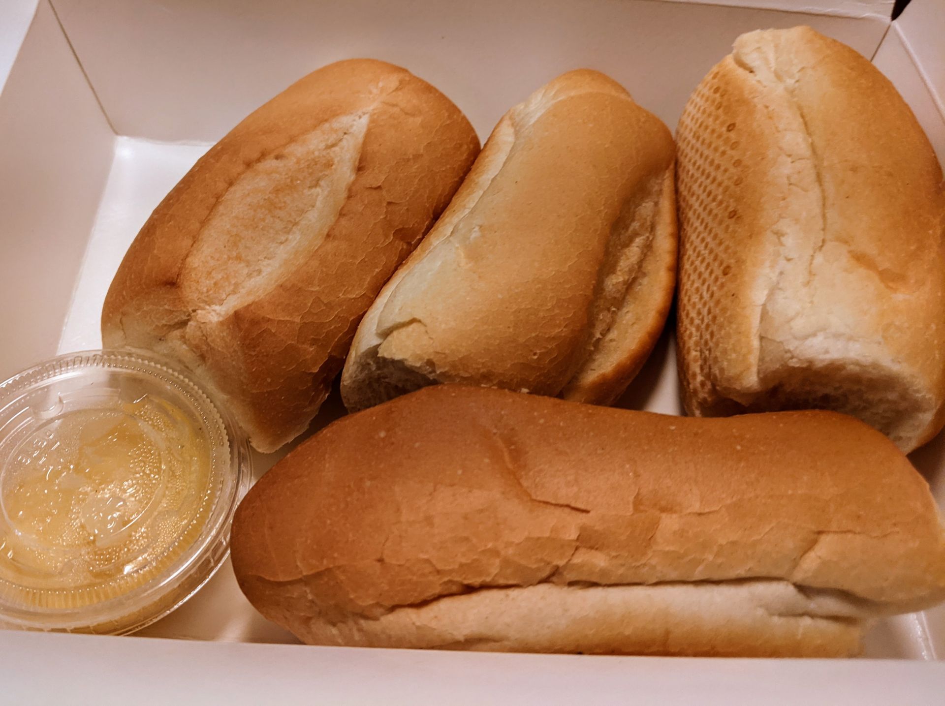 Khi mở các món ăn ra, tôi thấy họ còn kèm theo hai phần bánh mì bên trong. Bánh mì ổ nhỏ rất thơm, mềm xốp vừa phải và còn có bơ ăn kèm. Tôi nghĩ đây là bơ đường hay bơ mật ong vì có vị ngọt, nhưng vị ngọt đó làm bơ ngon hơn, và thấm vào bánh mì rất ngon.