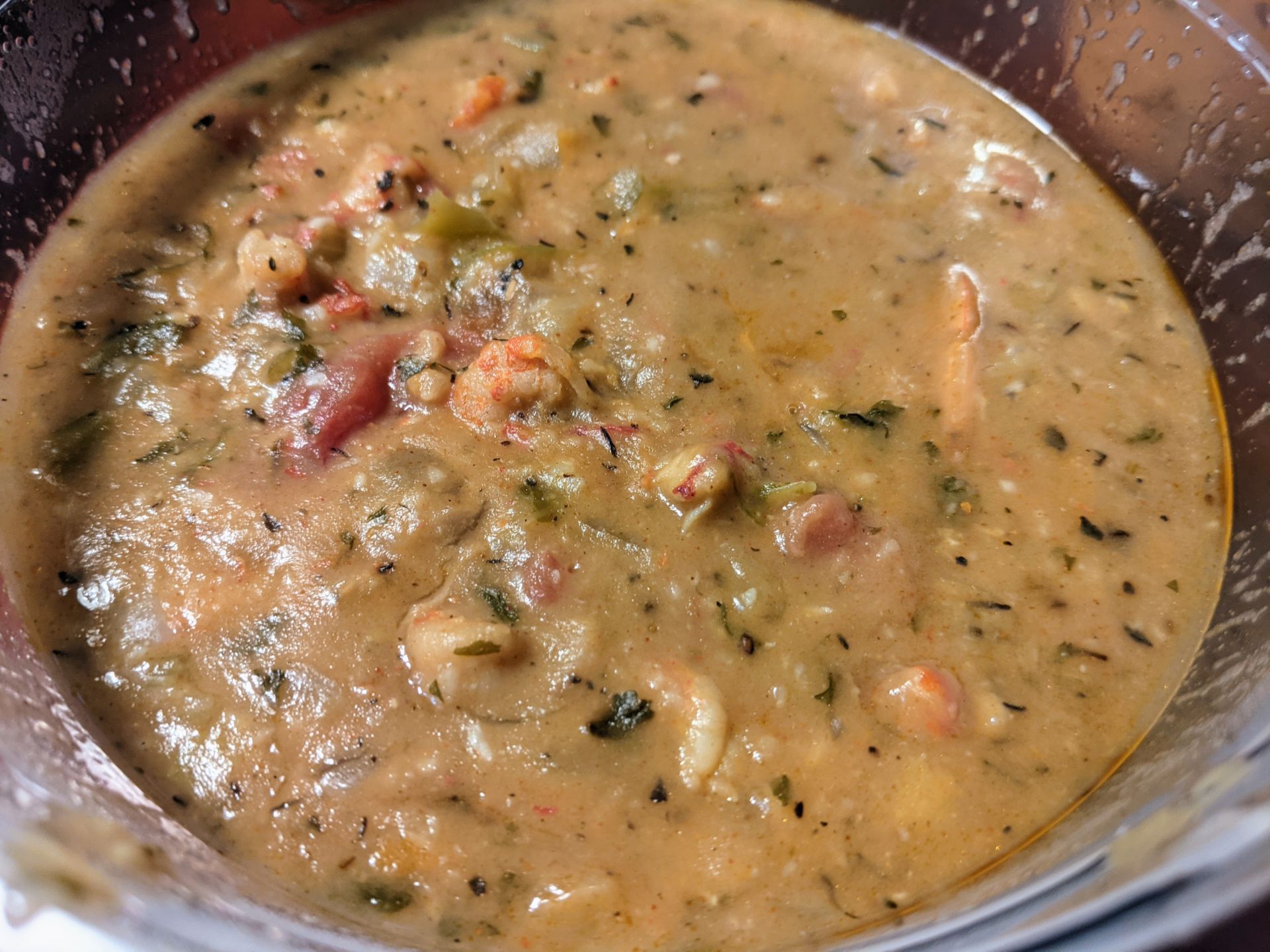 Tiếp theo là món cơm “jambalaya,” có cơm nấu với “Chúa Ba Ngôi,” thịt gà, tôm và xúc xích trong nước súp đặc sệt làm từ bột “roux.”