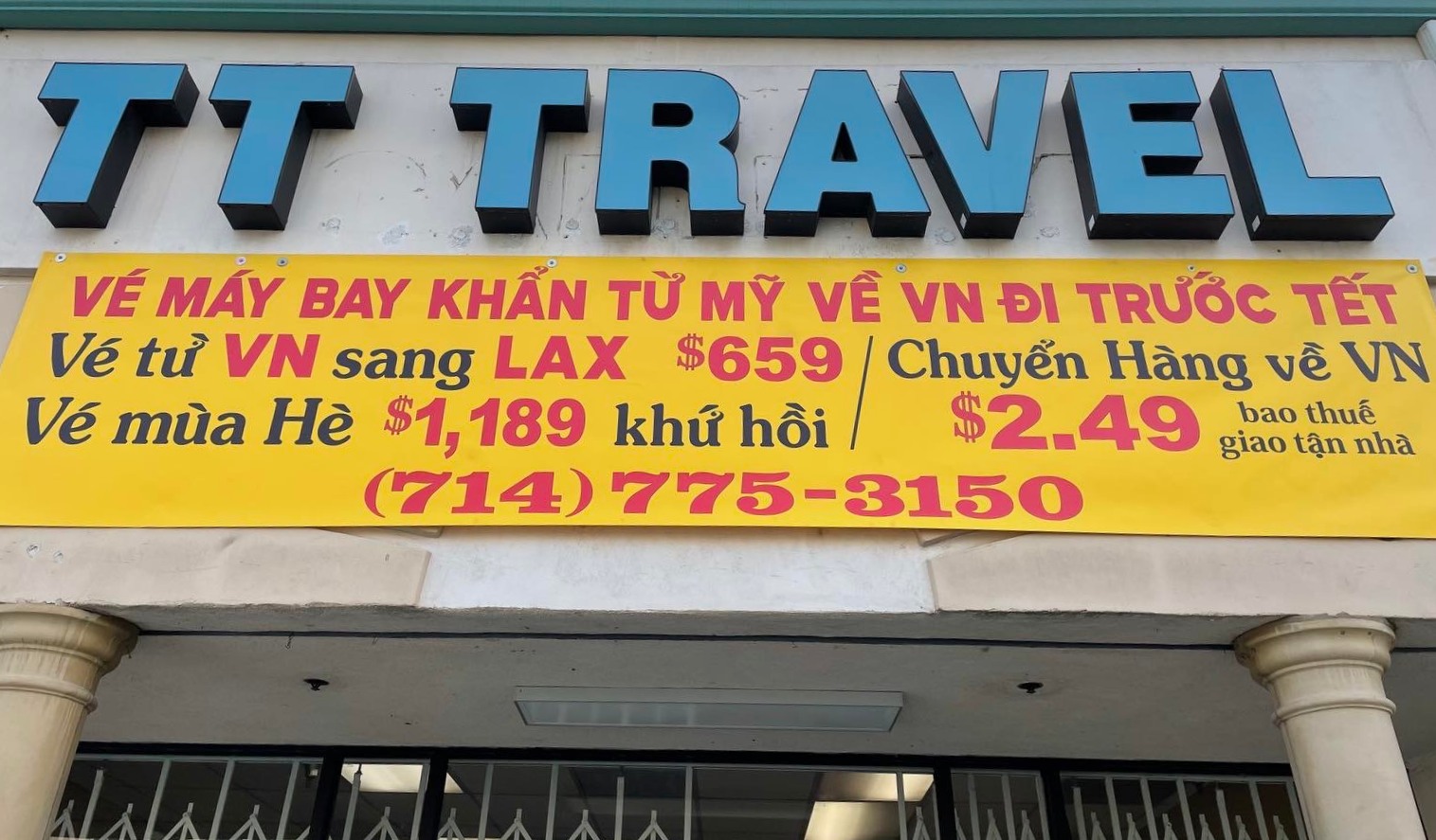 Người Việt ở Bolsa chắc không mấy ai không biết TT Travel, một địa chỉ quen thuộc nhiều năm nay và nổi tiếng với sự tận tâm và nhiệt tình. Nhân viên TT Travel luôn sẵn sàng giải thích tường tận tất cả thắc mắc của khách hàng và đưa ra những ý kiến tư vấn hợp lý sao cho khách hàng có thể tìm được vé máy bay về Việt Nam với giá rẻ nhất; hoặc chuyển hàng về Việt Nam với mức độ an toàn cao nhất.