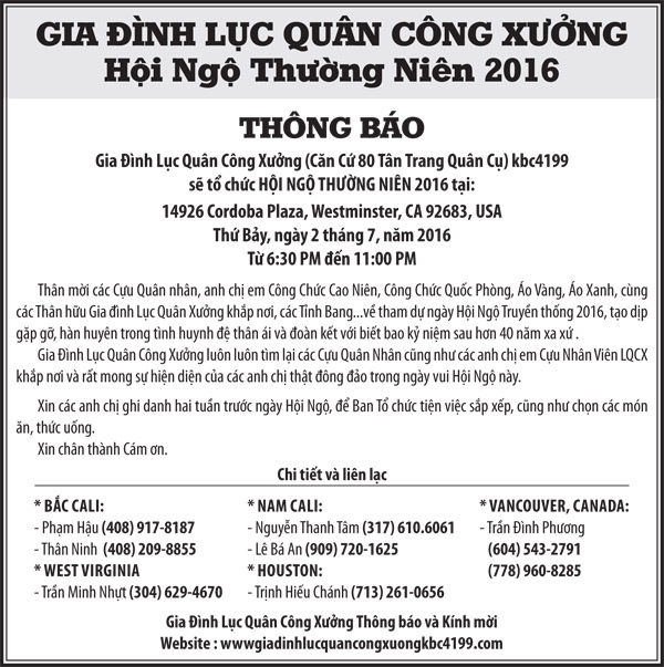 Thư mời họp mặt – Gia đình Lục Quân Công Xưởng