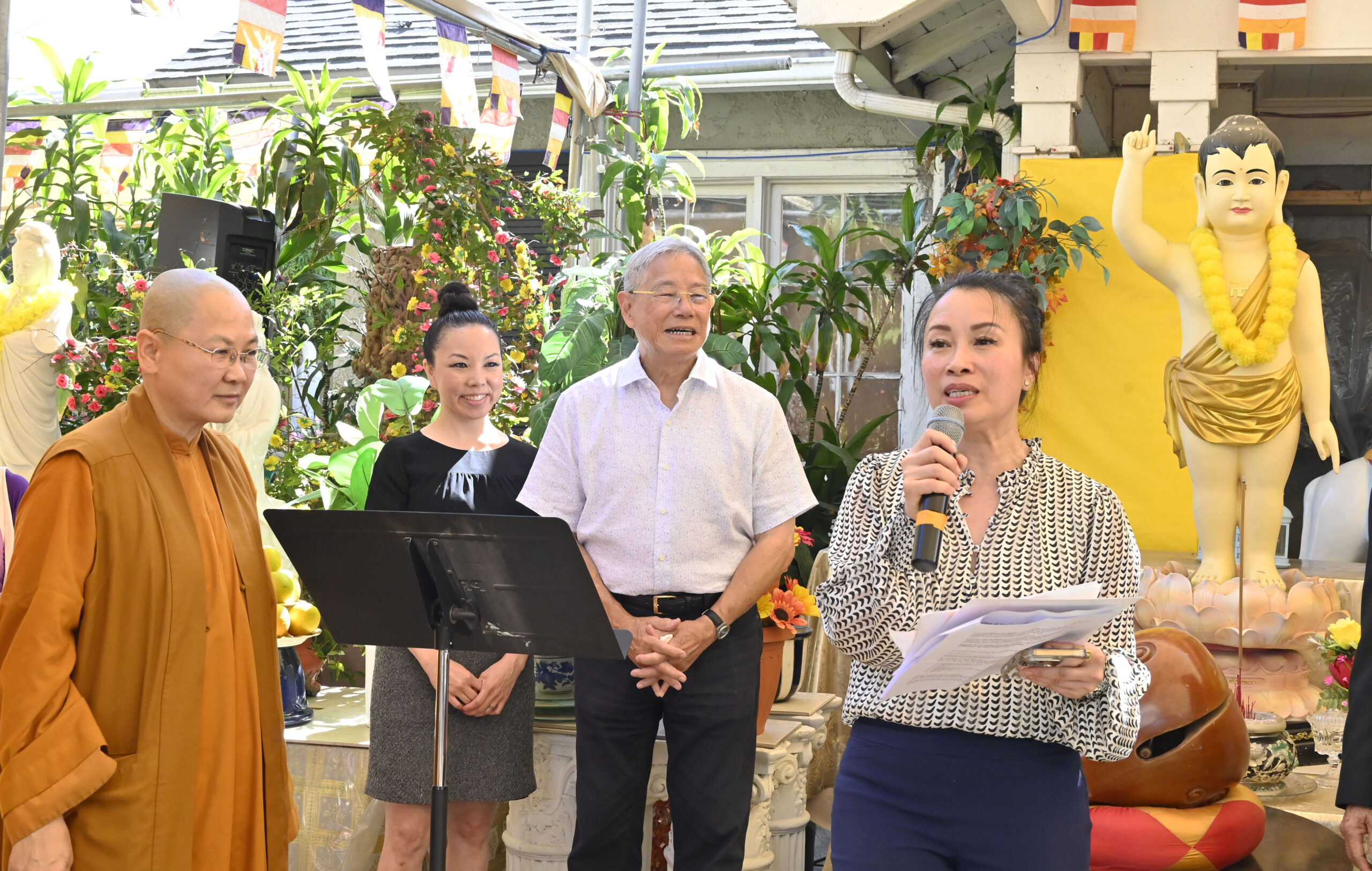 Kỹ sư Phạm Ngọc Lân, hội trưởng Tây Ninh Đồng Huơng Hội, người từng lo việc xây dựng tổ đình Minh Đăng Quang bao nhiêu năm qua, chia sẻ: “Nhớ lại 50 năm qua khi tôi giúp xây dựng chùa Trúc Lâm Yên Tử, Santa Ana, năm 1978, là ngôi chùa Việt đầu tiên ở Nam California. Lúc đó Giáo Sư Bùi Văn Bảo có nói: ‘Chỉ sợ đàn con quên Việt Ngữ/Đừng lo lũ trẻ kém Anh Văn.’ Lúc đó chúng tôi mở lớp Việt Ngữ đầu tiên ở chùa chỉ có ba học sinh Mẫu Giáo theo học với hai ông thầy.”
