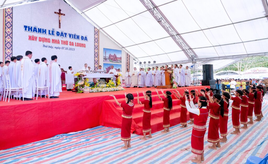 Ngày 7 Tháng Mười, 2023, Giám Mục Nguyễn Hùng Vị, giám mục Giáo Phận Kon Tum, về giáo họ Sa Loong làm lễ đặt viên đá đầu tiên để xây nhà thờ.