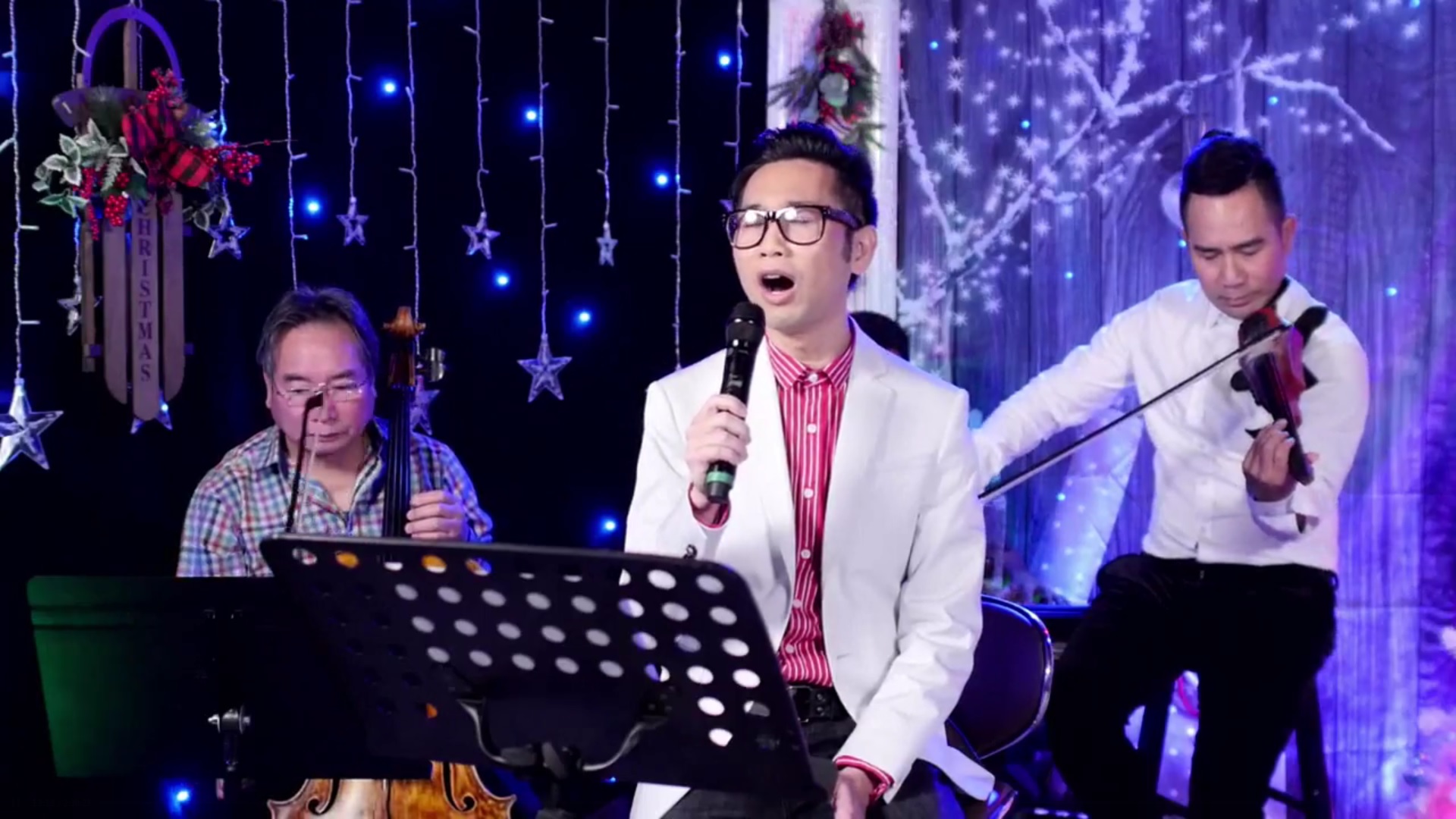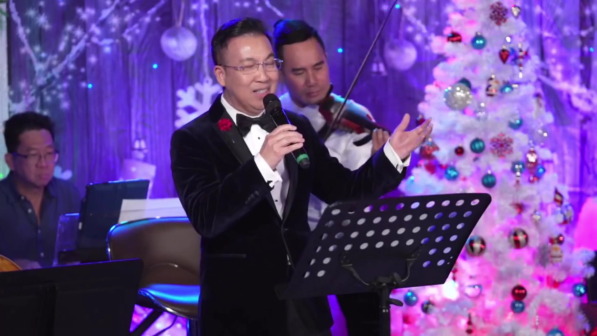 “Đêm Đông,” ngoài những giọng ca truyền cảm của những “chuyên gia yêu nhạc” còn có sự đóng góp của ca nhạc sĩ như Quốc Vũ (dương cầm), Luân Vũ (vĩ cầm) và Trung Dũng (trung hồ cầm, hay cello).