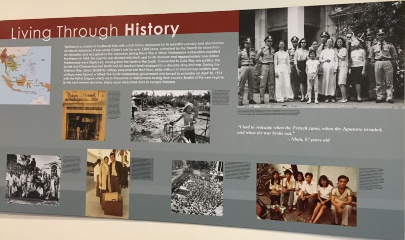 Phần nổi bật nhất của cuộc triển lãm là những hình ảnh từ xa xưa của hàng ngàn người Việt Nam. Những người đã chạy trốn Cộng Sản để đến Hoa Kỳ.