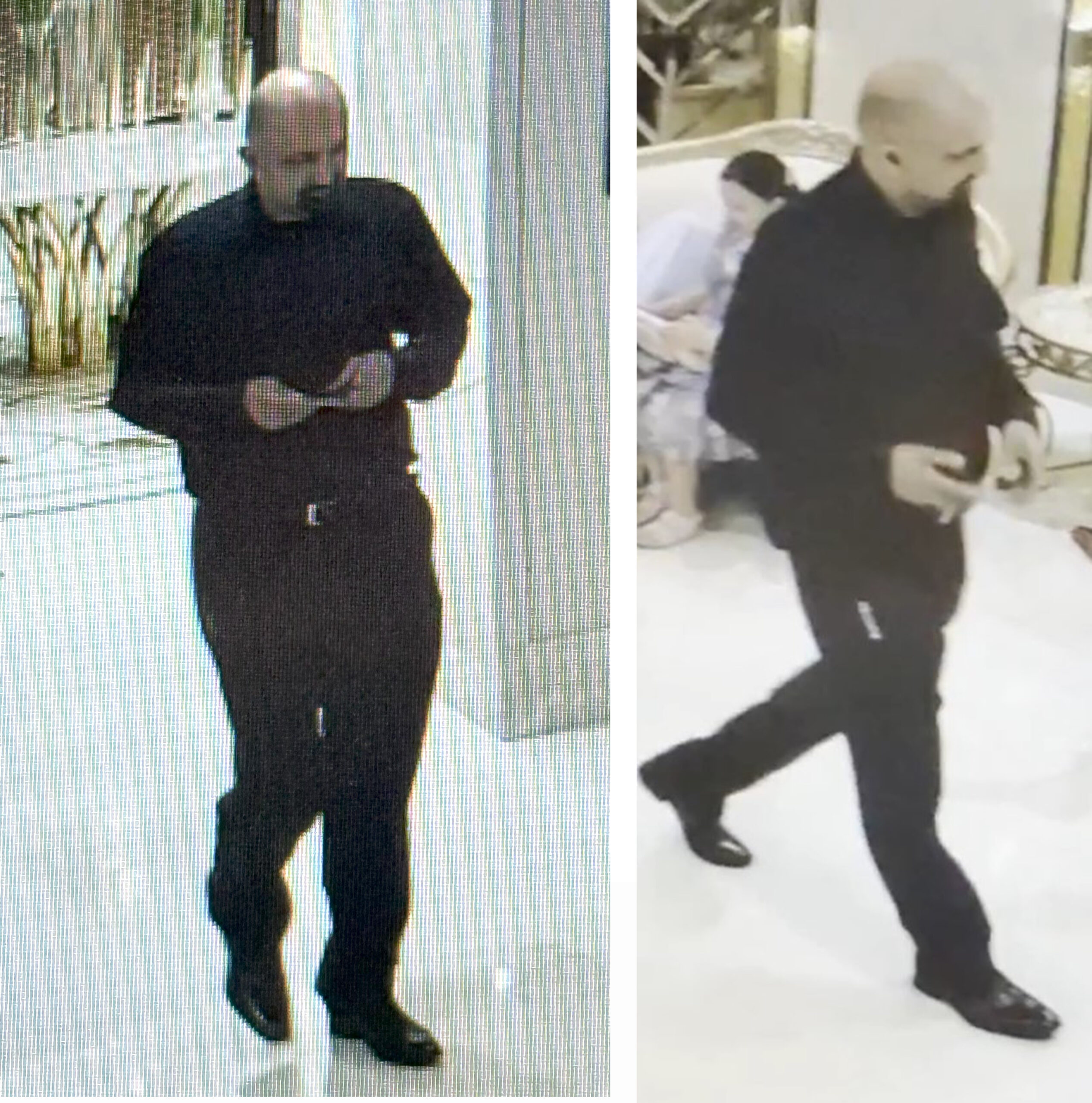 Nghi can leo lên ghế hành khách của một “chiếc SUV Mercedes màu đen đời mới,” cảnh sát cho biết trong tuyên bố, kèm theo hình ảnh nghi can lấy từ đoạn phim an ninh.