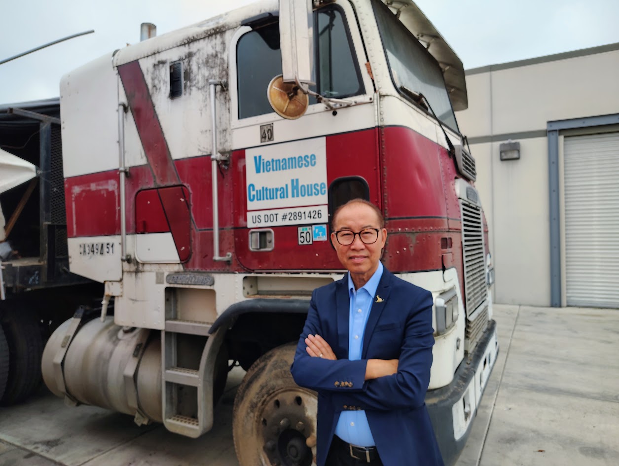 “Rất may là sau khi bơm, tất cả các bánh xe đều không bị hư, không phải thay bánh mới. Sau đó, chúng tôi mướn một xe kéo đến kéo toàn bộ chiếc xe truck, trên có Thuyền Tự Do, từ Pomona về Garden Grove hôm 24 Tháng Mười,” họa sĩ Châu Thụy chia sẻ thêm.