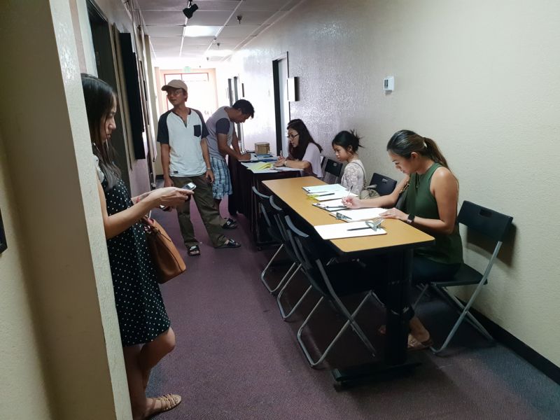 Bên ngoài hành lang, đông đảo cha mẹ đưa con em đến ghi danh. Có những em mừng rỡ khi nghe bạn gọi tên rồi cùng nắm tay nhau líu lo hỏi chuyện nhau một cách thân tình. Không gian râm ran âm thanh mùa tựu trường thật dễ chịu.