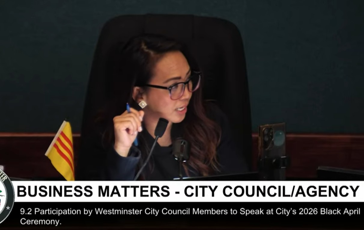 WESTMINSTER, California (NV) – Trong một hành động được coi là làm “giảm độ nóng” giữa các vị dân cử, Hội Đồng Thành Phố Westminster trong cuộc họp tối Thứ Tư, 22 Tháng Tư, bỏ phiếu 3-1-1 đồng ý không “bịt miệng” Nghị Viên Amy Phan West, có nghĩa là bà sẽ được phát biểu, tại Lễ Tưởng Niệm Tháng Tư Đen do thành phố tổ chức vào ngày 30 Tháng Tư tới đây.