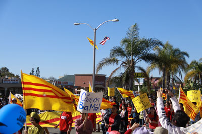 Trong khi đó, thượng nghị sĩ tiểu bang California, ông Lou Correa, vẫn giữ nguyên được sự thân tình, gần gũi khi đi dài theo con phố Bolsa để bắt tay những người dân đứng bên đường vẫy chào ông, vẫy chào đoàn diễn hành.