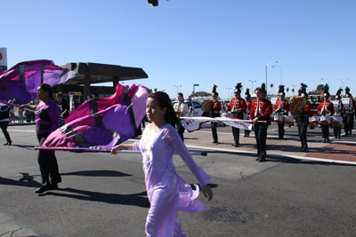 Ðoàn cờ và ban nhạc diễn hành của trung học Westminster High School. (Hình: Ngọc Lan/Người Việt) |