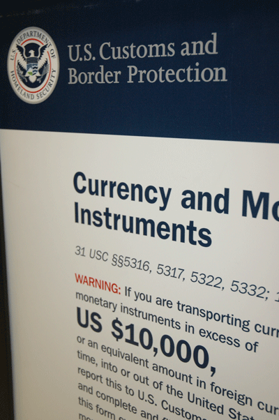 Mang hơn $10,000 khi ra hoặc vào Hoa Kỳ phải khai báo với quan thuế. (Hình: Ðỗ Dzũng/Người Việt) |