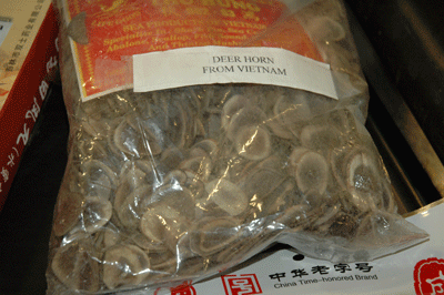 Một trường hợp khác là một hộp giấy, bề ngoài cho thấy đựng nước trái cây, nhưng bên trong lại chứa thịt, theo nhân viên CBP. Cơ quan này còn trưng bày cả một dương vật của con nai, được phơi khô, bọc giấy kiếng, để trong hộp gỗ. Một bịch nhựa bên trong là một cặp nhung nai, trị giá cả ngàn đô la. Rồi một bịch nhựa nữa, bên trong là hàng trăm miếng nhung nai cắt mỏng, như những miếng cải khô, có dán miếng giấy với hàng chữ “Dear Horn from Vietnam” (Sừng nai từ Việt Nam).