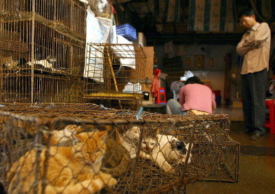 Nhiều loại súc vật, bao gồm mèo, được bán tại Trung Quốc để làm các món ăn của người dân. (Hình: STR/AFP/Getty Images)
