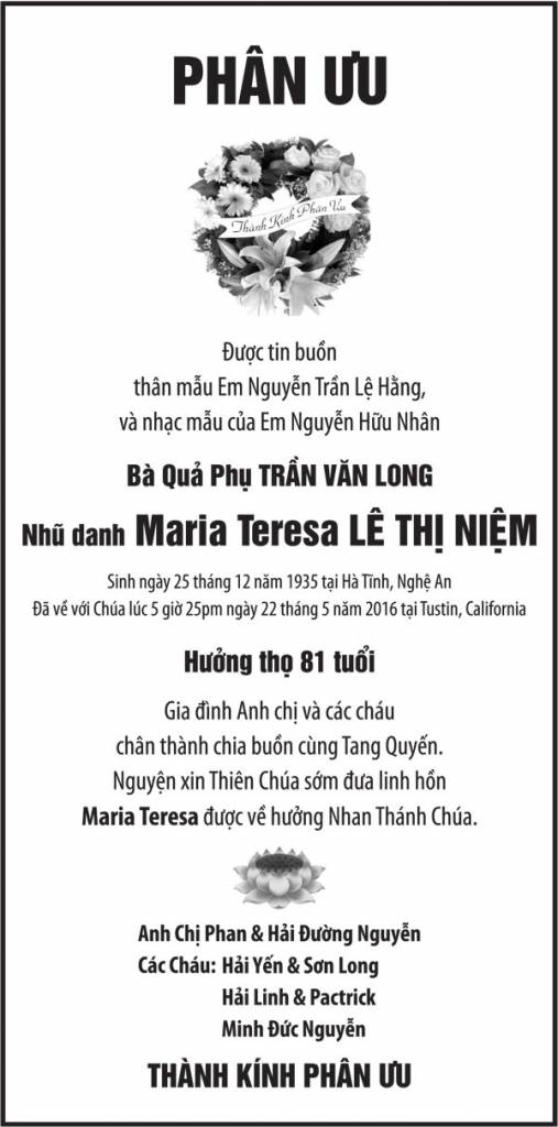 Bà Quả Phụ Trần Văn Long May 25, 2016 : 7:09 PM TIN LIÊN QUANMORE FROM AUTHOR Bạn Giuse Đào Đức Long Bà Lê Thị Như Loan Maria Nguyễn Thị Hồng Tước (3) Maria Nguyễn Thị Hồng Tước (1) Maria Nguyễn Thị Hồng Tước (2) Nhà Địa Lý & Tử Vi Thiên Cơ Ông Phạm Đình Mai