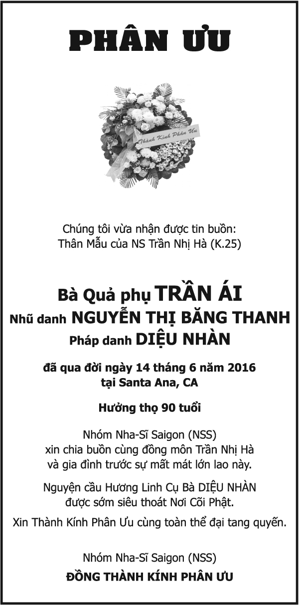 Bà Trần Ái June 20, 2016 : 7:34 PM TIN LIÊN QUANMORE FROM AUTHOR Nhà Địa Lý & Tử Vi Thiên Cơ Ông Phạm Đình Mai Cụ Ông Phạm Đình Mai Cựu Nữ Sinh TV 58-65 Maria Nguyễn Thị Hồng Tước Bà Quả Phụ Trần Đức Thụ (Nhũ Danh Maria Nguyễn Thị Hồng Tước) Bà Trần Thị Sâm Cụ Bà Trần Thị Sâm