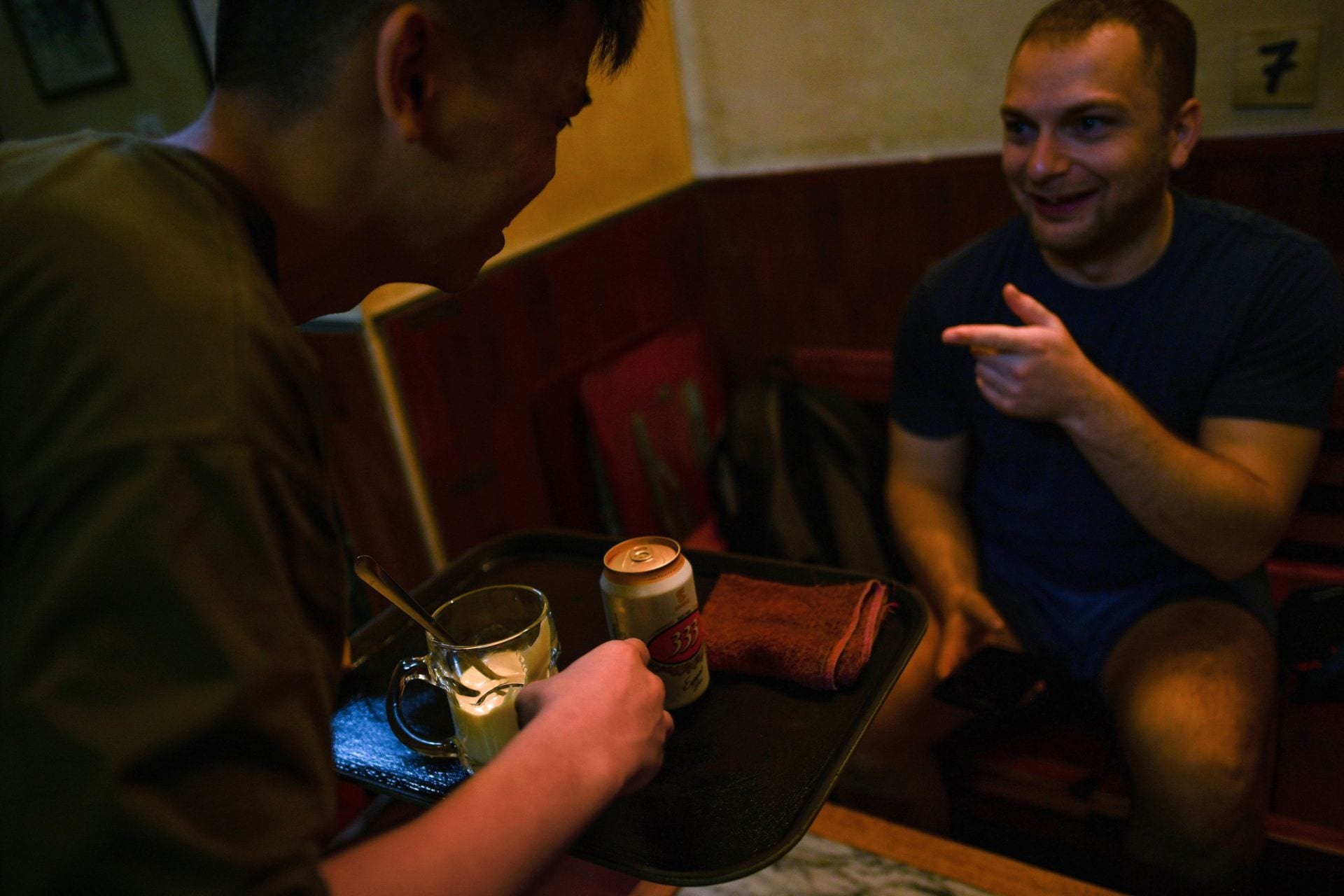 Để làm món này, tại quán cà phê Giảng, trứng được đánh lên như kem, sau đó trộn với bơ và đường. Khi dọn ra bàn, khách lấy lon bia lạnh và đổ vào ly đựng hỗn hợp trứng là có thể thưởng thức một món uống mới lạ, với vị đắng của bia và vị thơm béo của trứng.