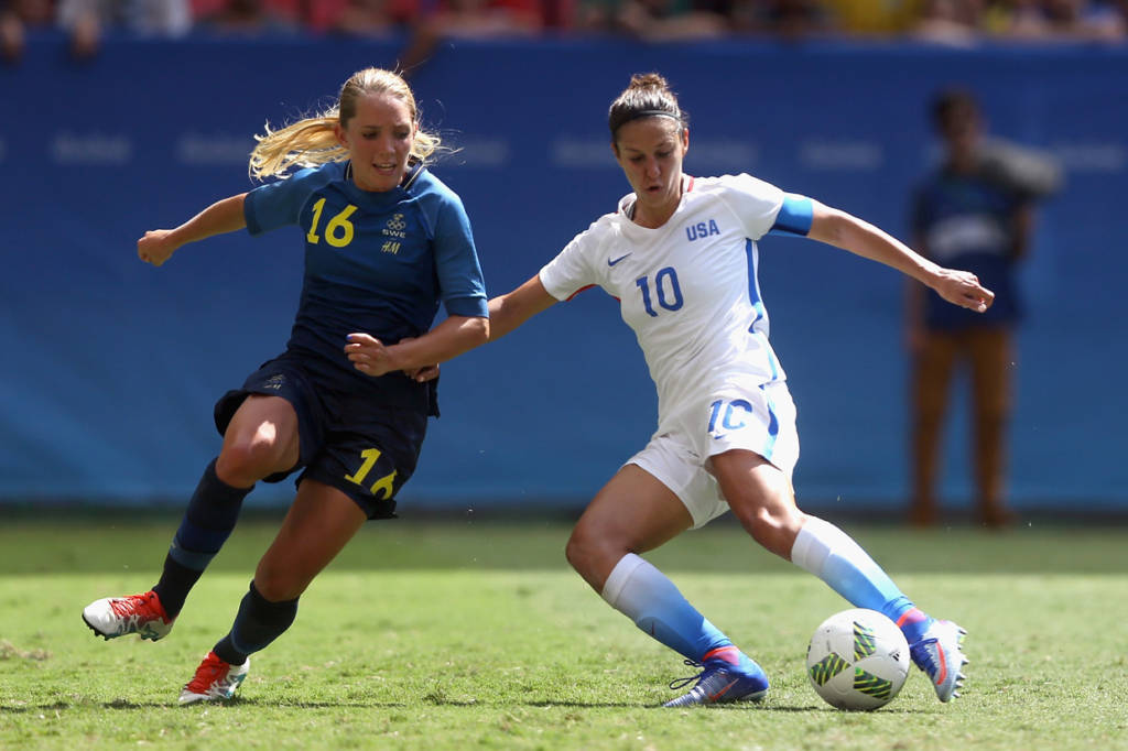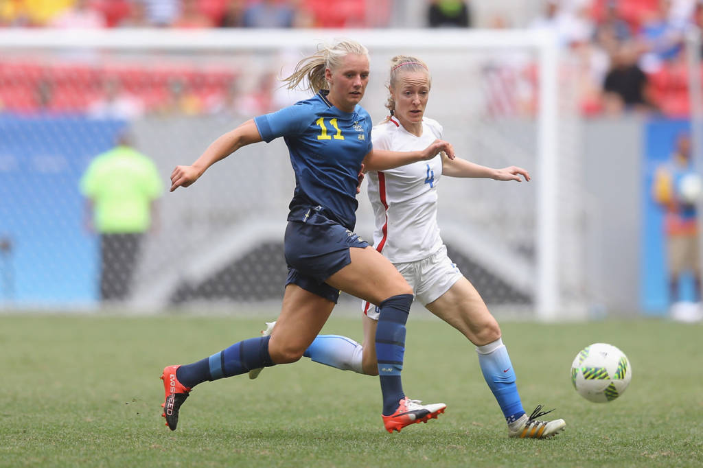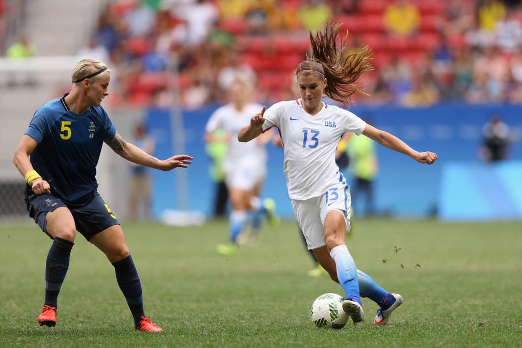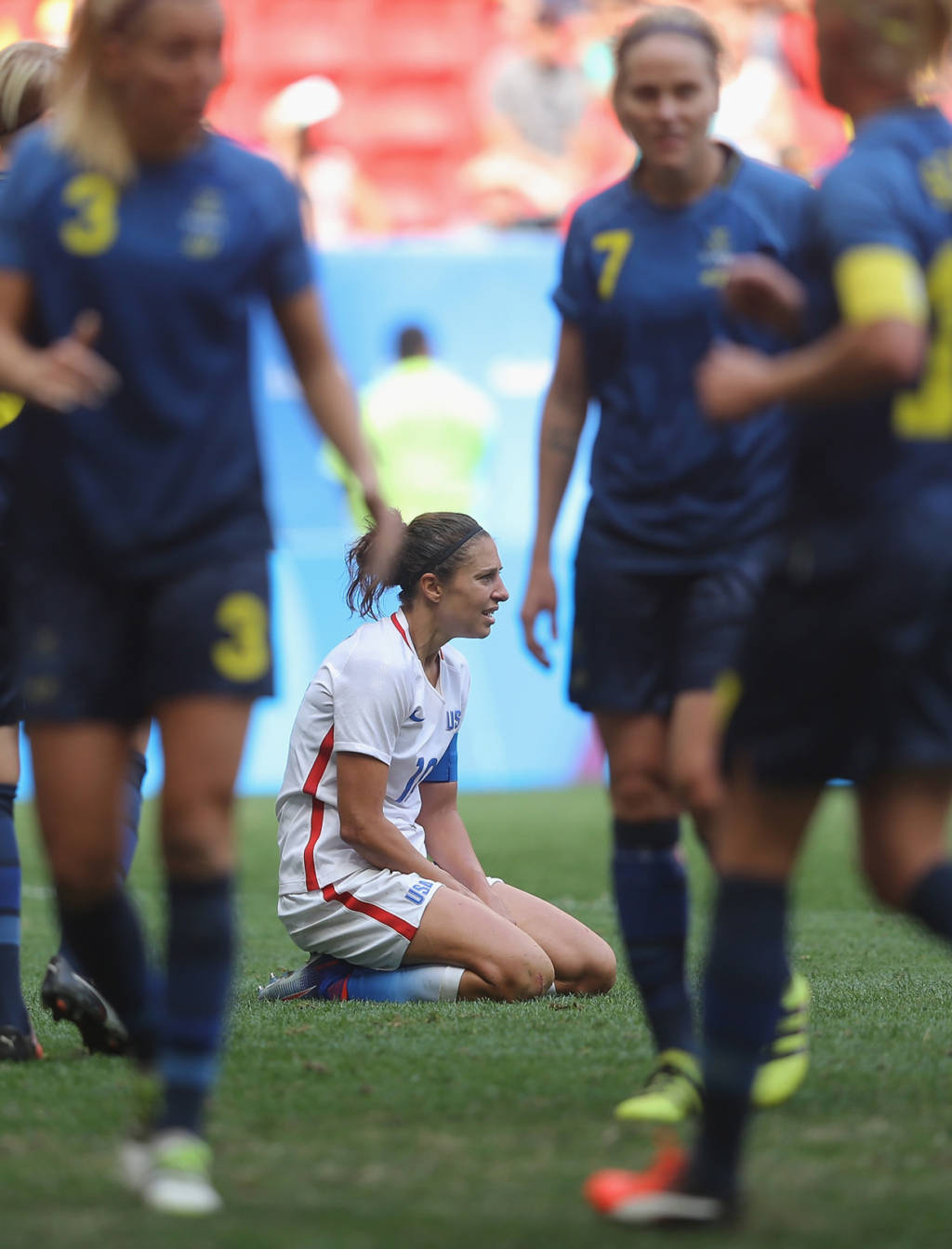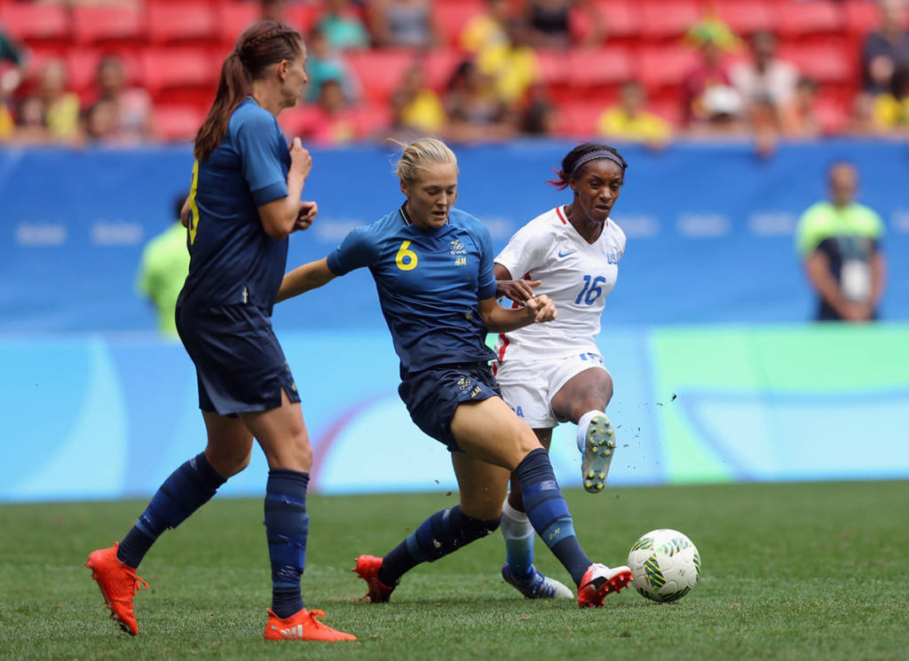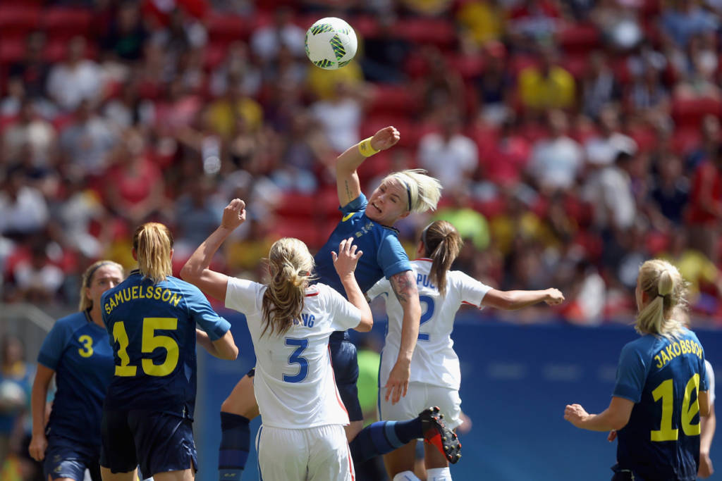 Ðội tuyển nữ Mỹ, năm rồi vừa đăng quang danh hiệu vô địch thế giới tại Vancouver, Canada, trước trận đấu này, chưa bao giờ thất bại trên đường đến trận chung kết của 5 kỳ Thế Vận Hội Mùa Hè, đoạt bốn huy chương vàng với ba kỳ liên tiếp cùng một huy chương bạc.Tuy nhiên, đội tuyển nữ Mỹ trẻ trung, trong trận tứ kết đối đầu với Thụy Ðiển, đội từng thua đậm Brazil 5-1 ở vòng bảng, đã bị bật khỏi giải bởi đội tuyển nữ Thụy Ðiển do cựu huấn luyện viên đội tuyển Hoa Kỳ, Pia Sundhage dẫn dắt – chưa từng thua Hoa Kỳ trong ba lần so tài trước đây.Trước khi bước vào trận đấu, các cô gái Mỹ được đánh giá sẽ dễ dàng vượt qua Thụy Ðiển do đối thủ đã chơi rất mờ nhạt ở vòng bảng, chỉ ghi ba bàn thắng và có trận thua đậm trước Brazil đến 5-1 và vào tứ kết với tư cách đội thứ ba có thành tích tốt nhất.Niềm tin tưởng tuyển nữ Hoa Kỳ sẽ tiếp tục có mặt ở trận bán kết vào ngày Thứ Ba tới đây và hơn nữa theo báo chí Mỹ tiết lộ lịch trình thi đấu giao hữu cho đội tuyển nữ Mỹ vô địch Thế Vận Hội đã được phác thảo, tuyển nữ Thụy Ðiển cũng được góp mặt.Hiểu rất rõ các học trò cũ của mình, nên huấn luyện viên Sundhage áp dụng đội hình với hàng phòng ngự thật vững chắc bao gồm nhiều lớp và chỉ thực hiện những cuộc phản công chớp nhoáng lợi dụng thời cơ dâng lên quá cao của hàng thủ Mỹ.Suốt thời gian còn lại kể cả hai hiệp phụ 30 phút, các cô gái Mỹ vẫn luôn luôn kiểm soát thế trận, liên tiếp tổ chức nhiều cuộc tấn công nhưng đều không thành công để cuối cùng, lần đầu tiên trong lịch sử bóng tròn nữ Thế Vận, cả hai phải giải quyết kẻ ở người đi tiếp bằng những quả đá phạt đền luân lưu.Kết quả trong 5 quả đá phạt đền đôi bên, Alex Morgan sút đầu tiên bị thủ môn Thụy Ðiển cản phá ra ngoài và Press lại tiếp tục bắn chim đưa banh vượt khỏi xà ngang, còn ba cầu thủ khác đều tung lưới. Trong khi đó, phía Thụy Ðiển chỉ một lần bị thủ môn Hope Solo cản phá được cú sút của Sambrant và bốn lần khác Hope Solo đều vào lưới lượm banh. Kết quả Thụy Ðiển đá bại Hoa Kỳ 4-3 với những quả đá phạt đền luân lưu và chính thức tiễn các cô gái Mỹ về nước. ( Hình ảnh : Getty Images )