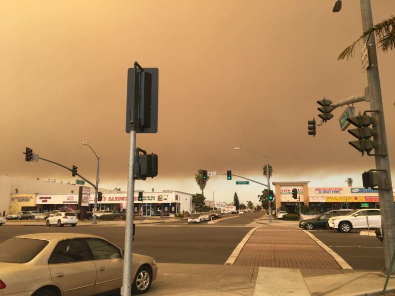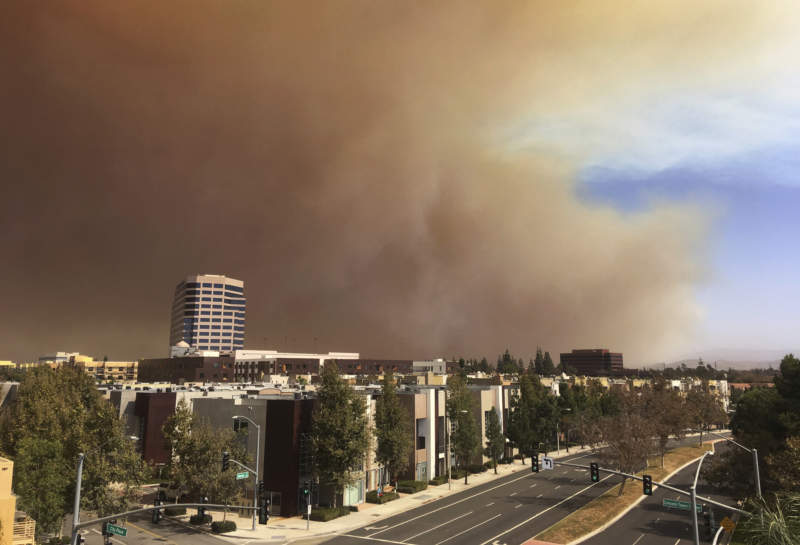 Thời tiết nóng và gió lớn khiến một ngọn lửa lớn lan nhanh trên 2,000 acre (mẫu) đất rừng và vẫn còn tiếp tục cháy vào sáng Thứ Hai, 9 Tháng Mười. Giới hữu trách khuyến cáo người dân tại một số vùng ở Anaheim Hills di tản vì khói bụi dày đặc và xa lộ 91 hiện tạm đóng để phục vụ cho việc chữa cháy. Khói bụi và tro bay khắp khu vự Little Saigon, nơi có đông đảo người Việt Nam sinh sống.