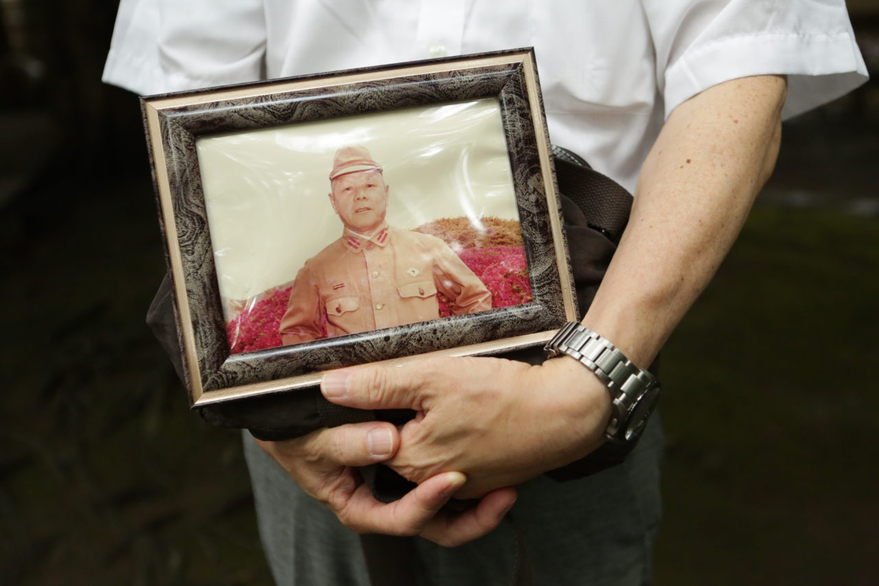 Ông Yusuke Suzuki cầm tấm hình của cha mình trong ngày kỷ niệm 72 năm Nhật đầu hàng.