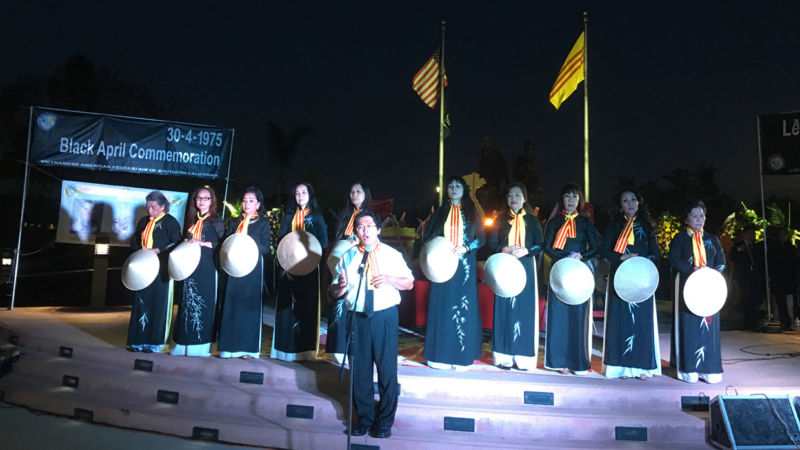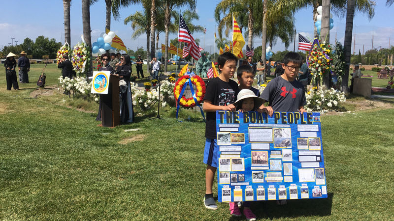 Little Saigon năm nay diễn ra khá nhiều hoạt động đễ tưởng niệm ngày đau buồn của người Việt tỵ nạn.Con cháu của thuyền nhân Việt Nam đang đưa những bức ảnh đau thương của boat people trong chương trình tưởng niệm tại tượng đài tưởng niệm thuyền nhân Việt Nam ở Little Saigon.Lễ chào quốc kỳ VNCH trong ngày tưởng niệm tháng 4 đen.Triển lãm những hình ảnh bi thương của dân tộc Việt Nam trong ngày 30 tháng 4 Đen tại tương đại Trần Hưng Đạo trên đường Bolsa.Ban tù ca Xuân Điềm hát tưởng niệm 30 tháng 4 Đen tại tương đài chiến sĩ Việt Mỹ.Cộng đồng người Việt hải ngoại cầu nguyện cho quê hương VN tại tượng đài tưởng niệm thuyền nhân Việt Nam ở Little Saigon ( Hình : Dân Huỳnh / Người Việt )