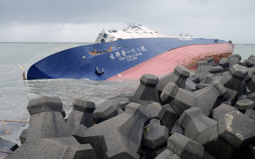Siêu bão Meranti đã đổ bộ vào Trung Quốc sau khi càn quét Đài Loan và được ghi nhận là cơn bão mạnh nhất trong 21 năm qua. Siêu bão Meranti, với với sức gió giật đến 227km/giờ, khiến một người thiệt mạng và hơn nửa triệu gia đình tại Đài Loan bị mất điện.Tại Đài Loan, một người thiệt mạng và 38 người bị thương.Hàng chục chuyến bay và tàu ở miền nam Trung Quốc đã bị phá hủy và hàng vạn người phải sơ tán.Một chiếc tàu đánh cá lớn bị lật do hậu quả của siêu bão Meranti, tại Sizihwan ở Kaohsiung.Siêu bão Meranti với sức gió lên đến 230kph, mất điện tại một số khu vực và gây ra sự chậm trễ của ngành đường sắt.Trên đường phố, những cột điện và cây cối bị gió bật gốc, xe tải bị lật và mái nhà bị thổi bay.Một chiếc xe nhỏ chui qua bảng hiệu giao thông bị đổ sập vì gió mạnh của cơn bão Meranti, phía nam Đài Loan vào ngày 14 tháng 9 năm 2016. ( Hình ảnh : Getty Images )