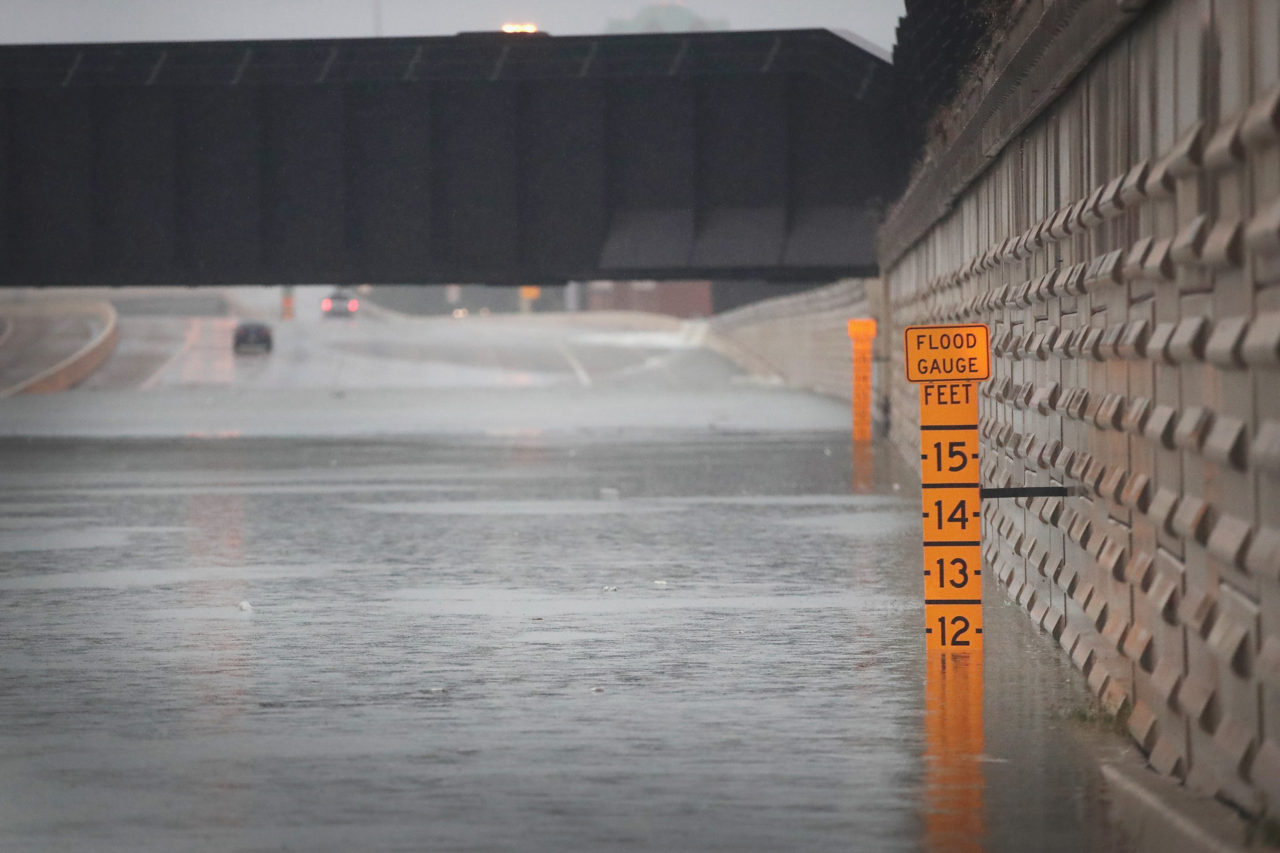 Một thước đo mức độ ngập trên xa lộ 10. (Hình: Scott Olson/Getty Images)