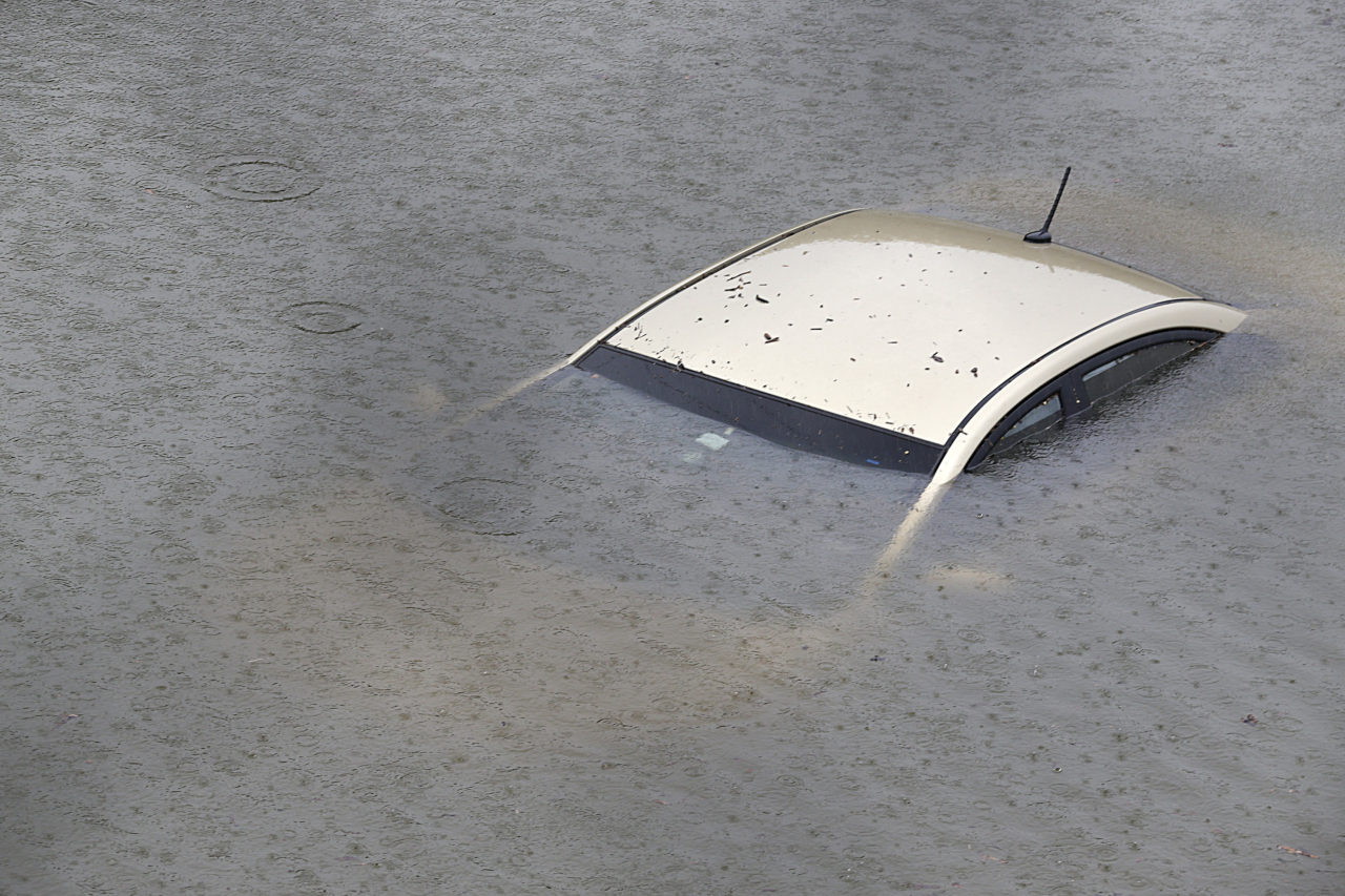 Một chiếc xe hơi bị chìm trên xa lộ 610. (Hình: THOMAS B. SHEA/AFP/Getty Images)
