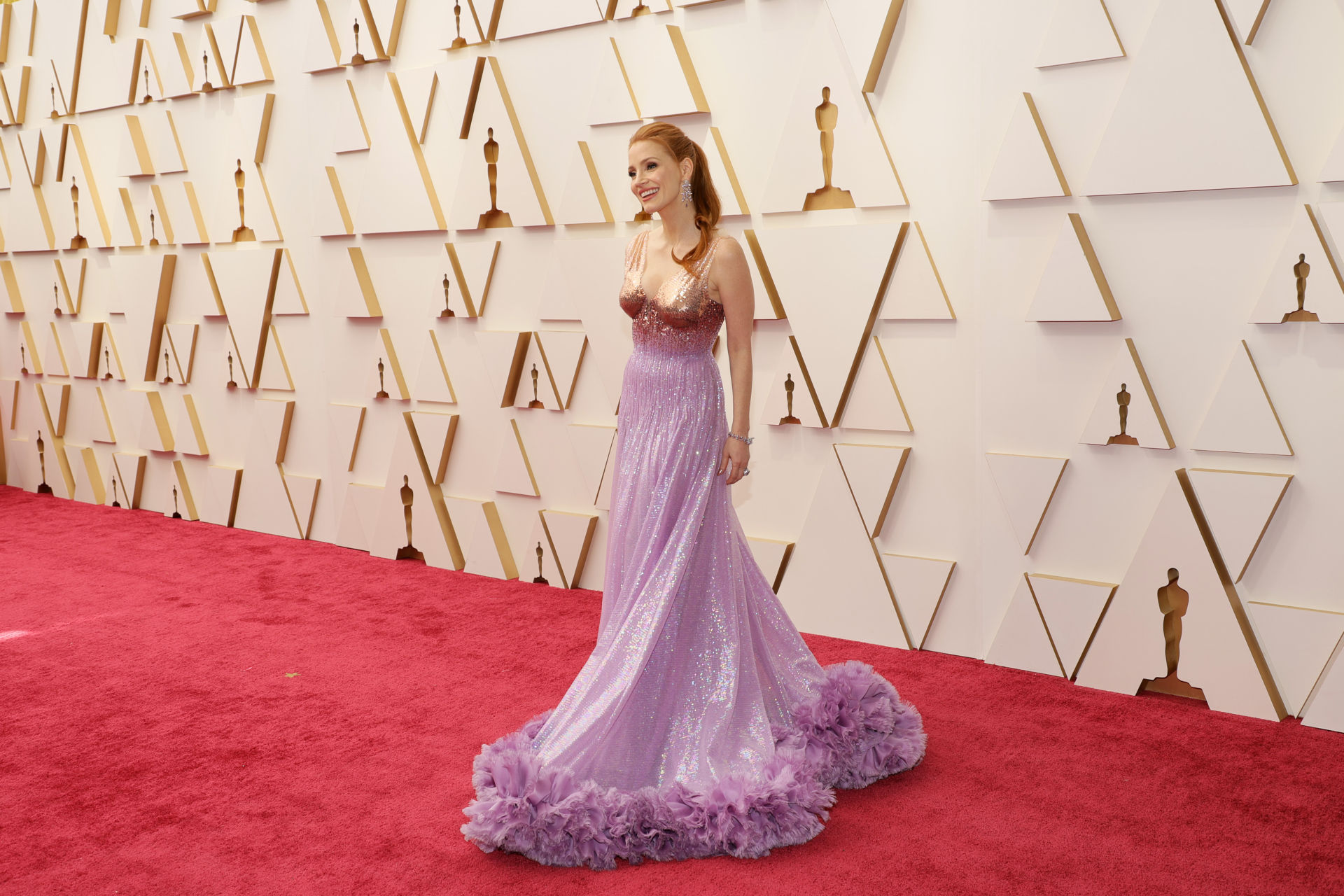 Chủ nhân của tượng vàng Oscars ở hạng mục “Nữ Diễn Viên Chính Xuất Sắc Nhất” năm nay, Jessica Chastain, khoe nét nữ tính trong bộ cánh của nhà mốt Gucci.