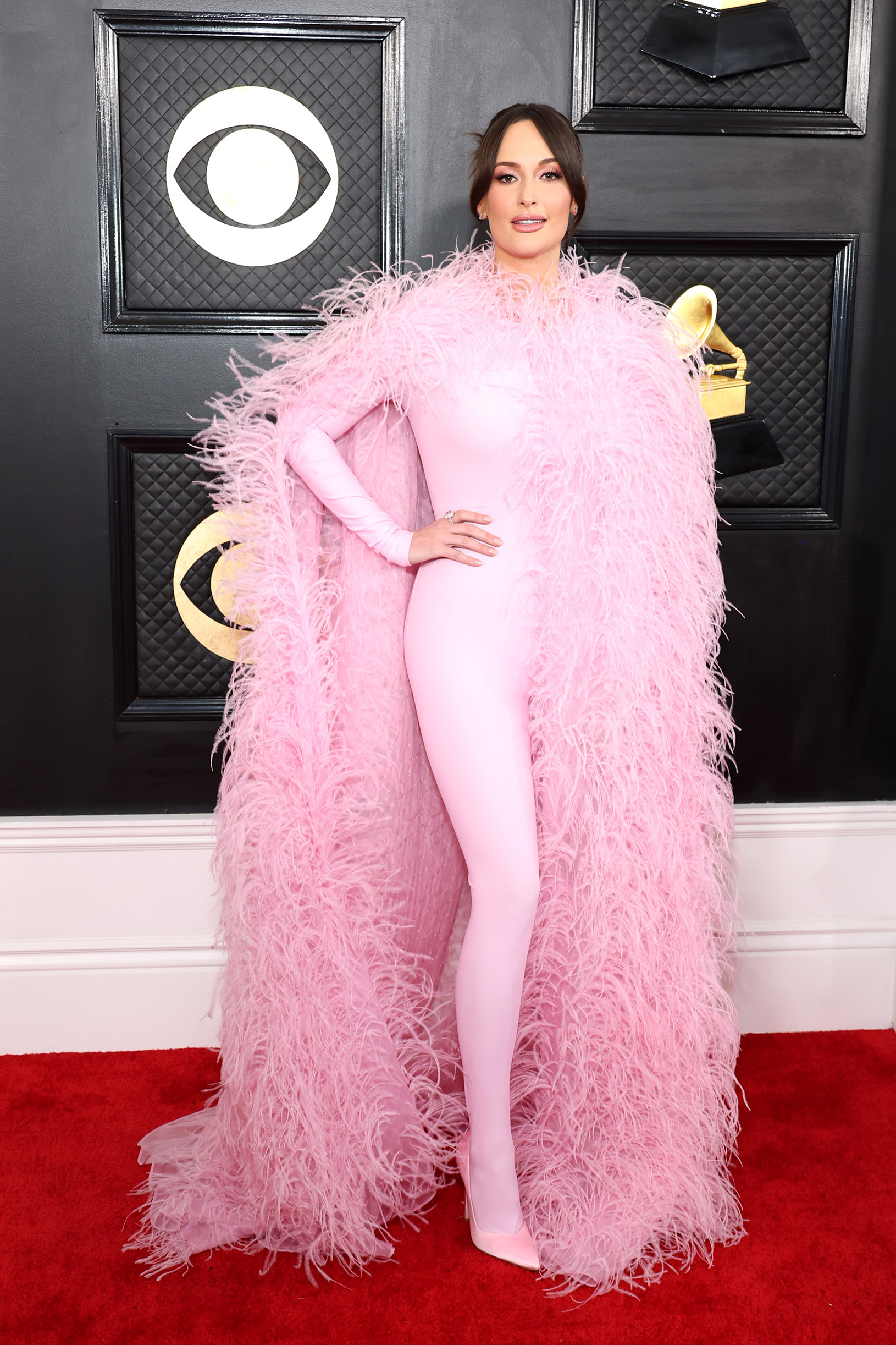 Cô ca sĩ nhạc đồng quê, Kacey Musgraves, không còn là nữ ca sĩ cầm đàn hay hát trong xe như trong các clip ca nhạc nữa mà trở thành một fashionista chính hiệu trong bộ bodysuit màu hồng nhạt, mang đôi giày cao gót màu hồng nhạt và khoác bên ngoài chiếc áo choàng lông vũ cũng hồng nhạt của thương hiệu Valentino.