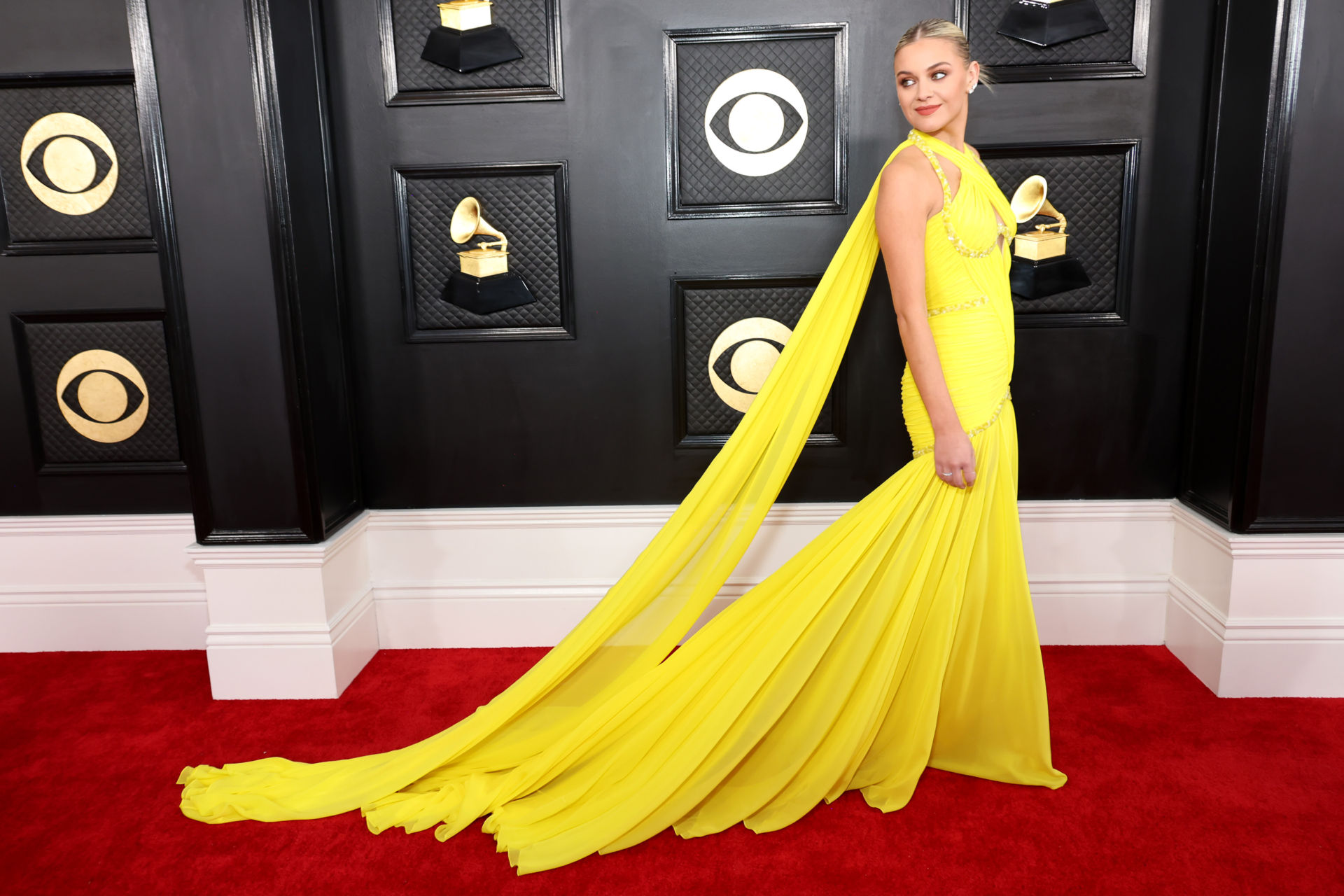 Thêm một danh ca nhạc đồng quê xuất hiện tại Grammy Awards nhưng mang phong cách mỹ miều, tiểu thư và đài các trong chiếc đầm vàng thướt tha của nhà mốt Prabal Gurung. Đó chính là nữ ca sĩ Kelsea Ballerini.