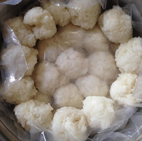 Nấu cơm nếp trong nồi cơm điện cho chín. Khi thấy cơm nếp chín dẻo là được. Cho nếp chín ra khay hoặc đĩa, trải đều cho dễ nguội sau đó rắc men vào trên mặt khay hoặc đĩa (chú ý là nếp phải nguội nếu như còn nóng thì men sẽ chết không lên men được). Sau đó dùng tay thắm qua chén nước muối vắt từng viên như ý thích (sử dụng nước muối để nếp không dính vào tay).