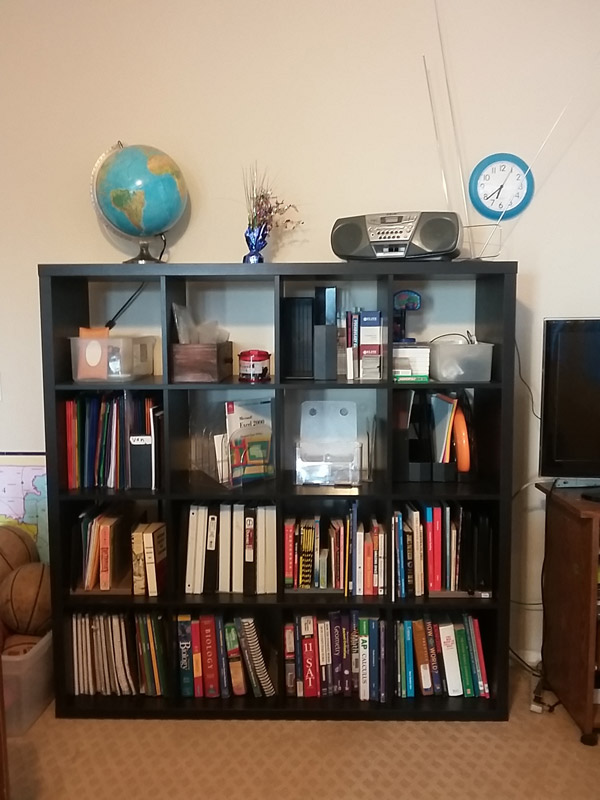 Buổi trưa nhìn hai cha con hì hục lắp ráp cái tủ rồi cho kê vào sát tường trong phòng khách gia đình tôi biết việc mua cái kệ sách hơi trễ một chút nhưng rất phải. Nói theo người Mỹ thì đây là một “good investment” một sự đầu tư tốt. Thật vậy, chiếc tủ hình vuông chia ra mười sáu ô đủ để cho tôi sắp xếp. Sách vở nặng thì để dưới. Giấy tờ nhẹ thì để trên. Những cuốn sách giáo khoa này bìa cứng và giấy thật tốt. Nhiều cuốn tôi mua lại từ thư viện. Mấy năm nay sách trở thành “ebooks” trên Kindle nên tôi không nghĩ là mình sẽ có thêm nữa đâu. Leonard dành một ô để game, một ô để tập vở.