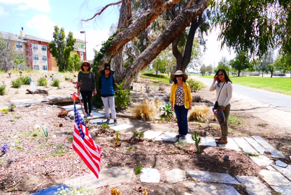 Phát phần ăn xong nhìn xa xa có 2 lá cờ Hoa Kỳ bay phất phới trong nắng. Chúng tôi đến đó thăm thì ra nơi đây là nơi tưởng niệm những người vô gia cư đã qua bên kia thế giới. Có nghệ nhân nào đó trang trí đơn sơ với con đường có tầng cấp lót bằng những tấm gạch bóng đã không có hình dạng giống nhau, màu sắc khiêm tốn. Ở đây, bạn sẽ thấy danh sách 12 người đã mất được viết bằng mực đen trên tấm đá màu lam. Đứng đây, trong không gian yên tĩnh, tự nhiên nỗi xót xa dâng trào trong tâm khi nghĩ về kiếp người không nhà.