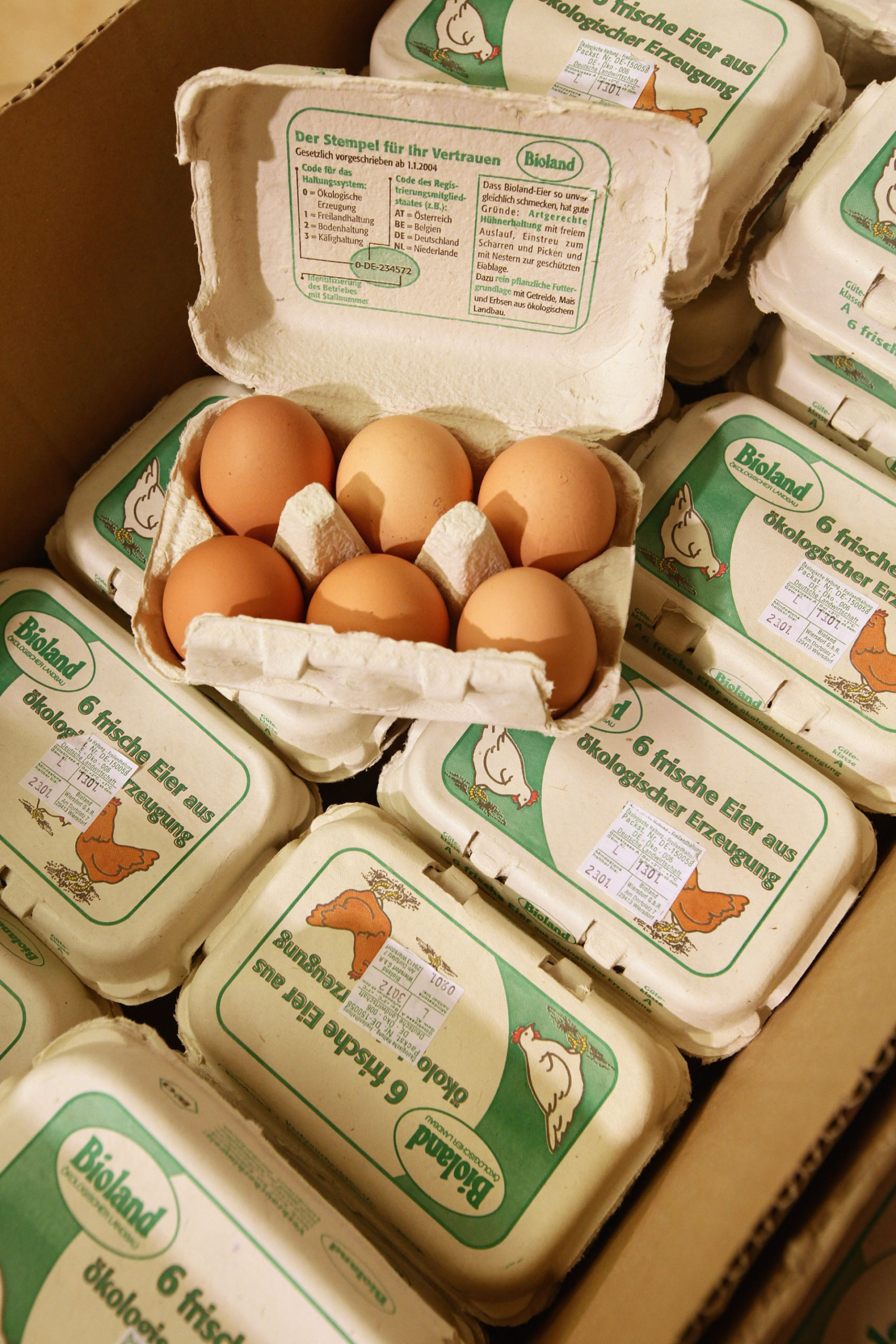 Hầu hết các siêu thị đều có trứng hữu cơ. Chương trình hữu cơ quốc gia của USDA, đã thiết lập các quy tắc sản xuất thực phẩm hữu cơ, bao gồm trứng hữu cơ và gà đẻ trứng hữu cơ, bao gồm: