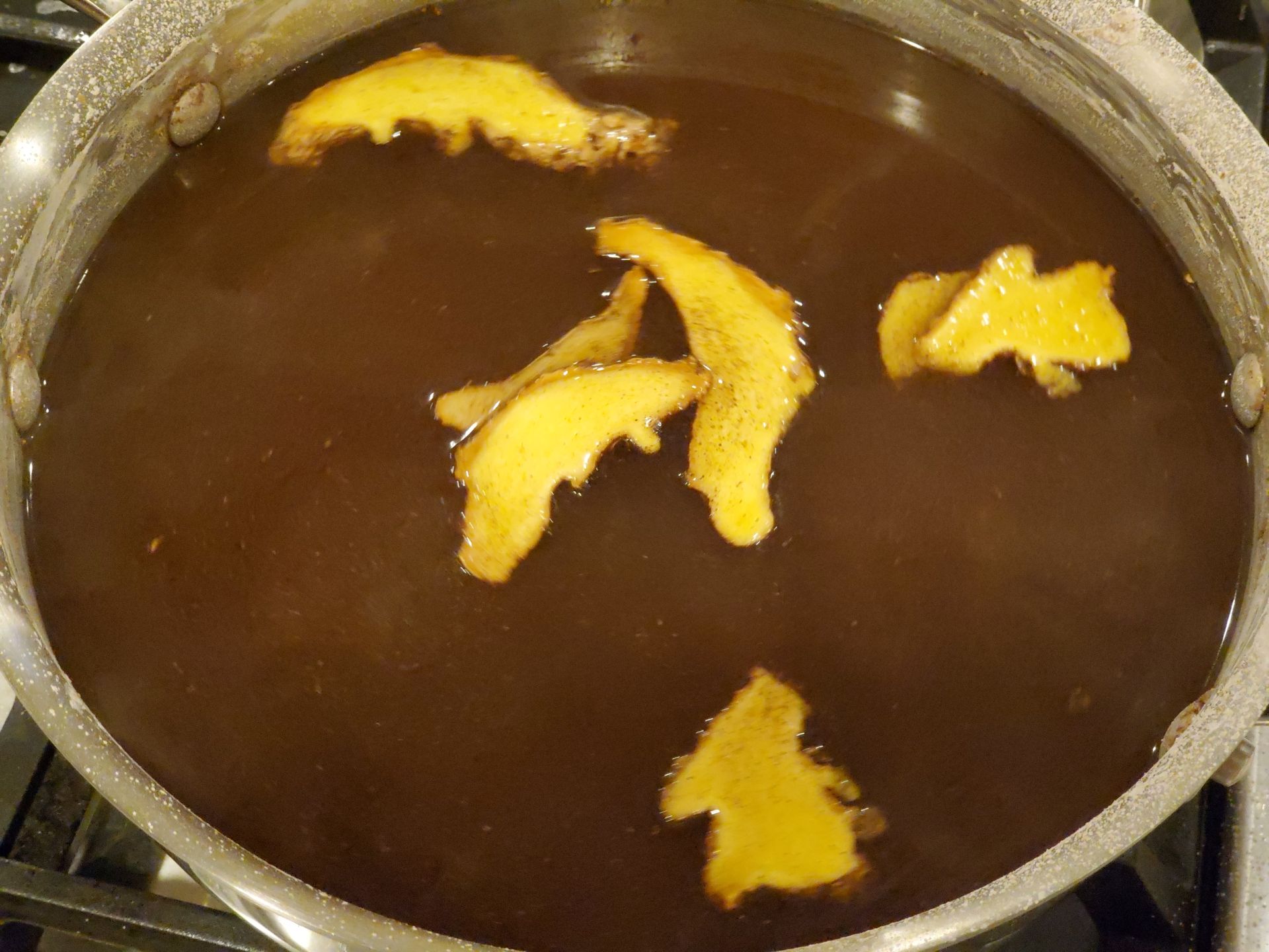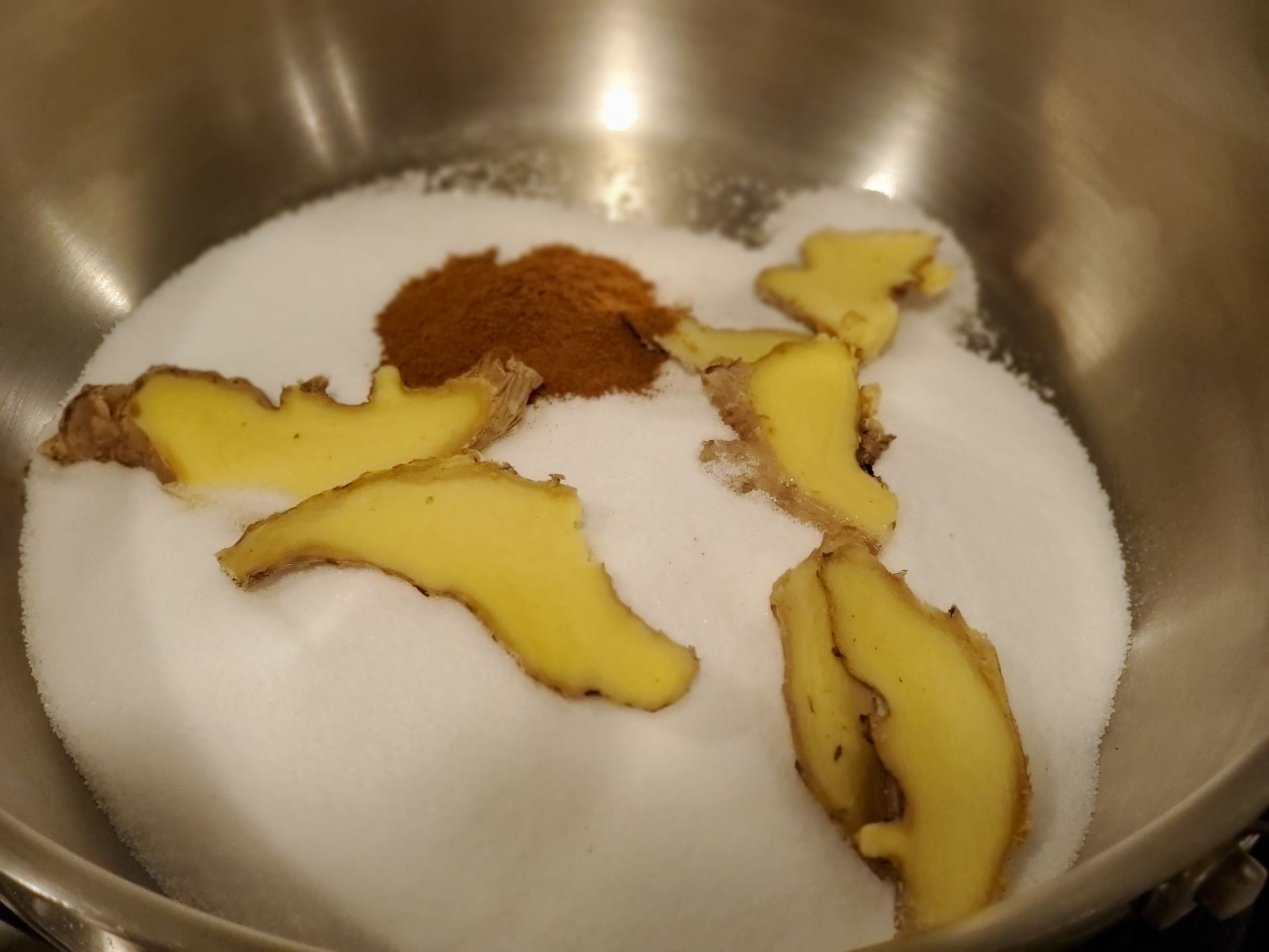 -Cho 500 g muối + 2 lít nước + củ gừng cắt thành 4-5 lát + 1-2 muỗng cà phê bột quế + 3 muỗng cà phê đường vào nồi. Nấu sôi.