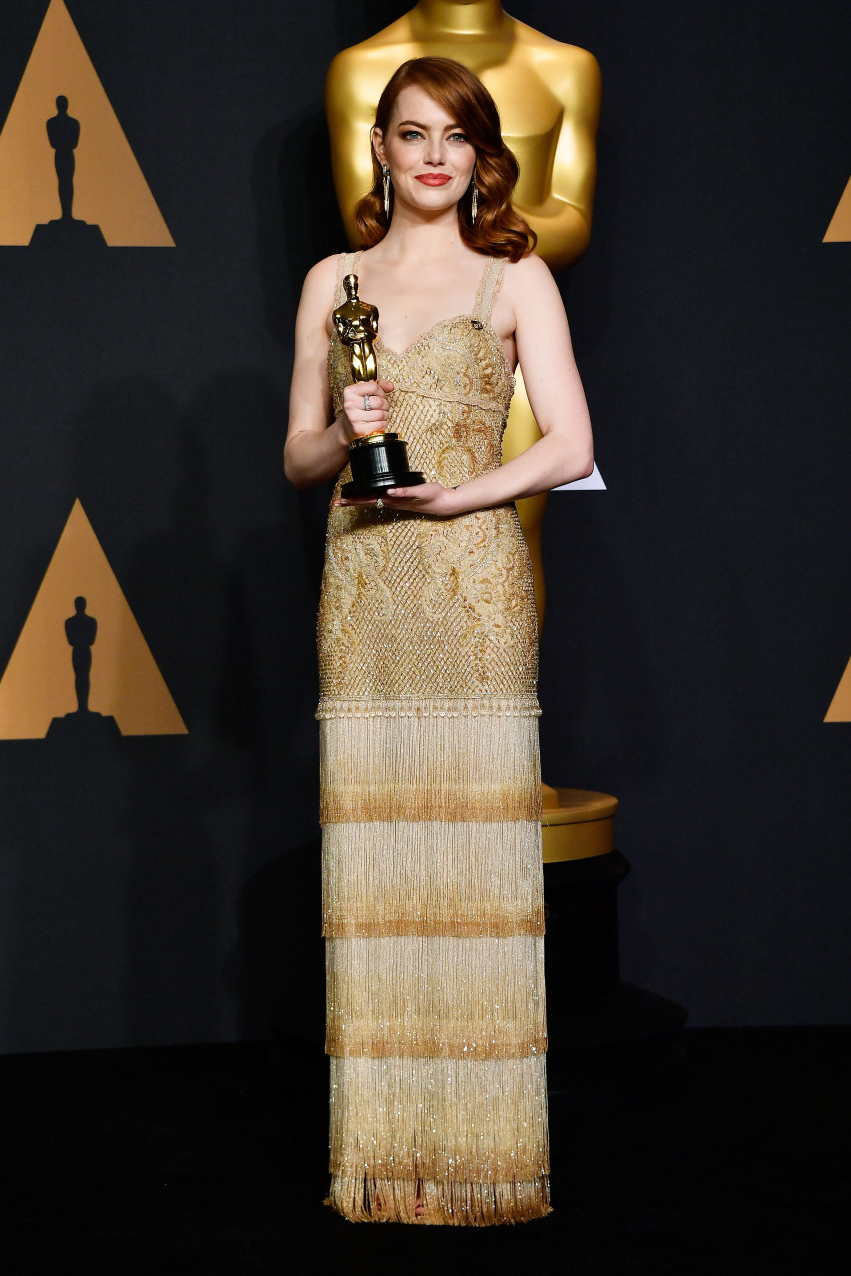 Tại lễ trao giải Oscar lần thứ 89 diễn ra hồi 26 Tháng Hai, 2017, Emma Stone khiến mọi ánh nhìn đều phải ngước về mình khi cô trông như quý cô thời Golden Age ở Mỹ ngày xưa “xúng xính” dự dạ tiệc.