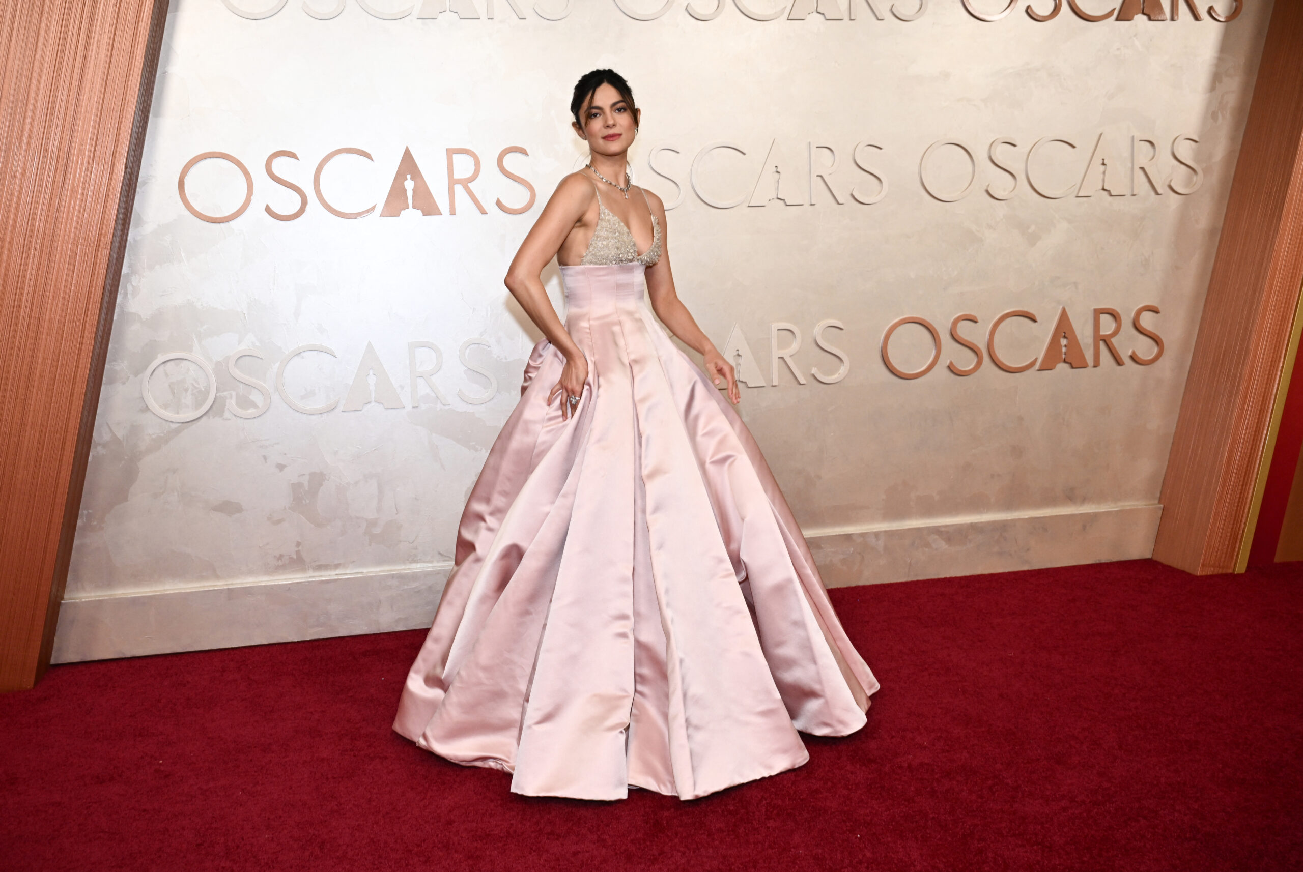 Nữ diễn viên được đề cử hạng mục “Nữ Diễn Viên Phụ Xuất Sắc Nhất” trong phim “A Complete Unknown,” Monica Barbaro, ngọt ngào khoe sắc trong chiếc đầm lụa hồng nhạt dịu mắt của nhà thiết kế Dior.