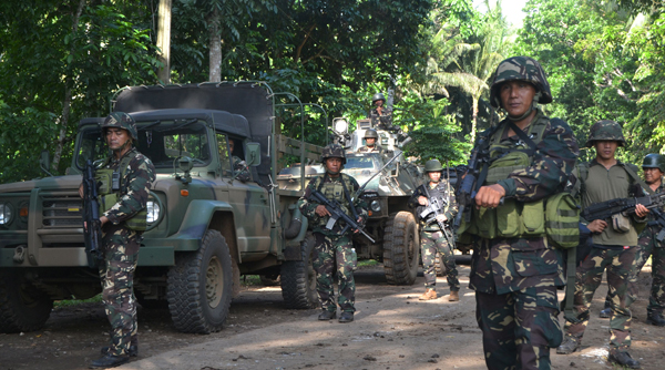 Binh sĩ Philippines tuần tiễu khu vực được coi là nơi một con tin người Canada bị chặt đầu. (Hình: STR/AFP/Getty Images)