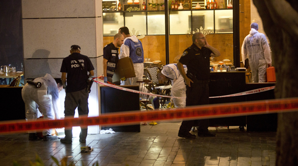 Hai nghi can người Palestine bị bắt, theo ông Micky Rosenfeld, phát ngôn viên cảnh sát Israel, nói, trong đó có một người bị bắn, còn người thứ nhì bị bắt ở chợ Sarona.