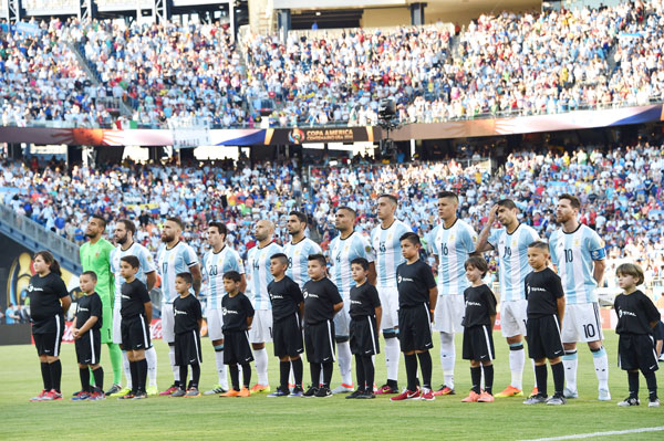 Ðội tuyển Argentina chào quốc kỳ trong trận tứ kết Copa America 2016 với đội tuyển Venezuela diễn ra tại Foxborough, Massachusetts ngày 18 tháng 6, 2016. (Hình: Getty Images)
