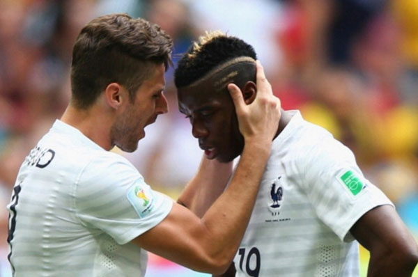 Hai cầu thủ Olivier Giroud (trái) và Paul Pogba của đội tuyển Pháp. (Hình: Getty Images)