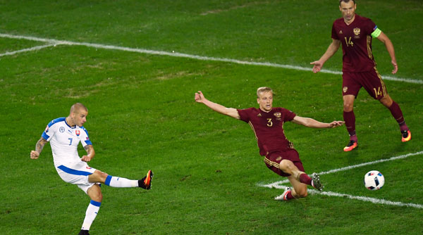 Sau trận đầu thất bại 0-2 trước Wales ngày Thứ Bảy 11/6, đội tuyển Slovakia đã hồi phục được vị thế trong bảng B bằng trận thắng Nga 2-1 trên sân Lille, miền Bắc nước Pháp, buổi chiều Thứ Tư 15/6.